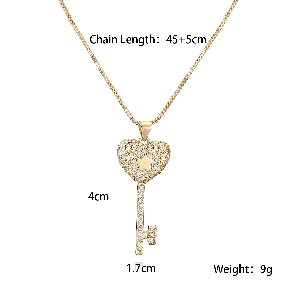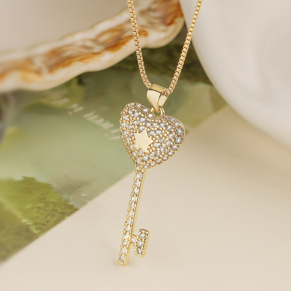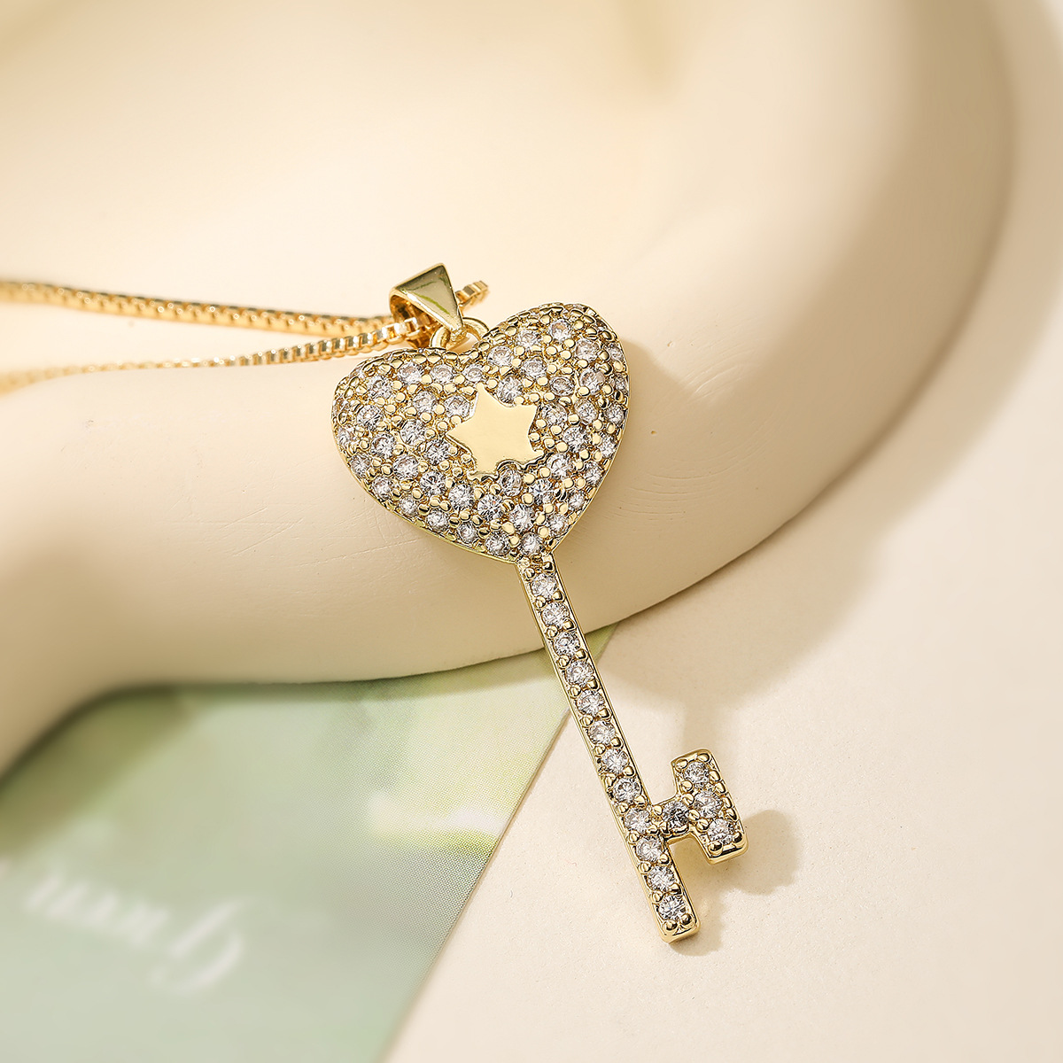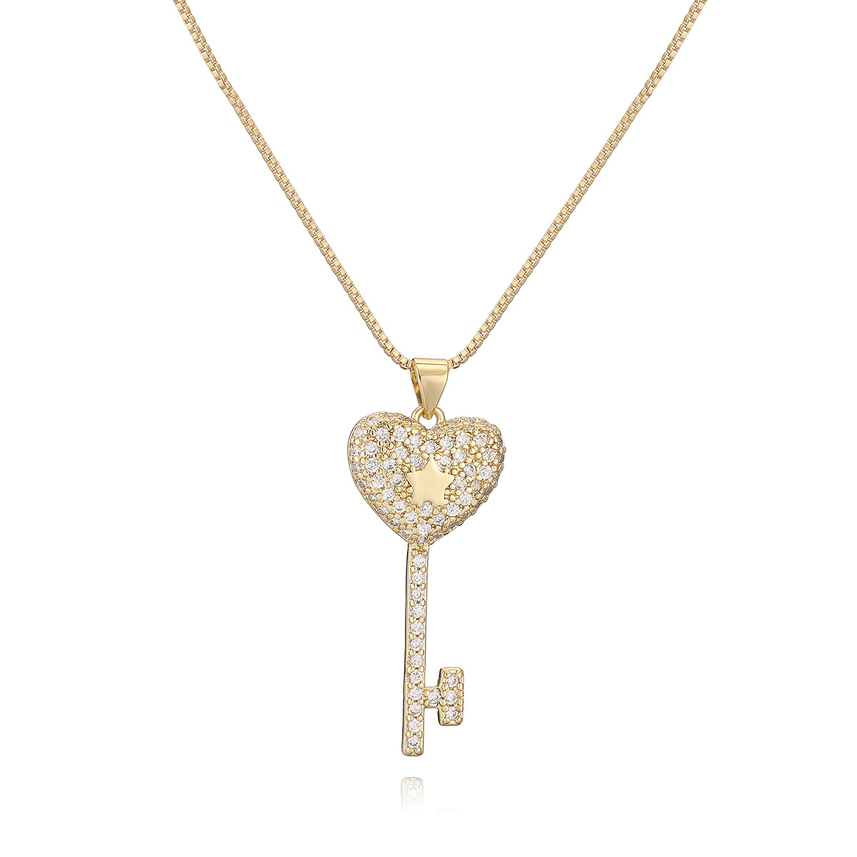 Collier en laiton cubique Zircon Micro Pave, clé, Plaqué or 18K, bijoux de mode & pavé de micro zircon & pour femme, Vendu par PC
