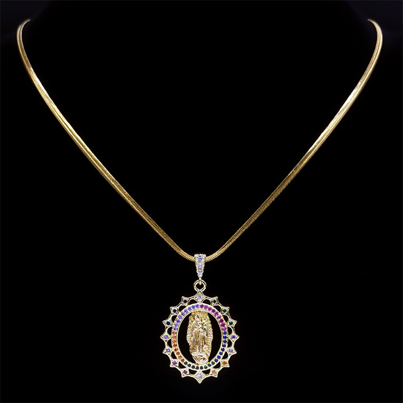 Collier en laiton cubique Zircon Micro Pave, avec 304 chaîne en acier inoxydable, Placage, pavé de micro zircon & pour femme & creux, doré, Vendu par PC