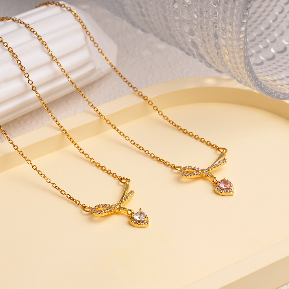 Collier en laiton cubique Zircon Micro Pave, 304 chaîne en acier inoxydable, avec laiton, coeur, Placage, bijoux de mode & pavé de micro zircon & pour femme, plus de couleurs à choisir, Vendu par PC