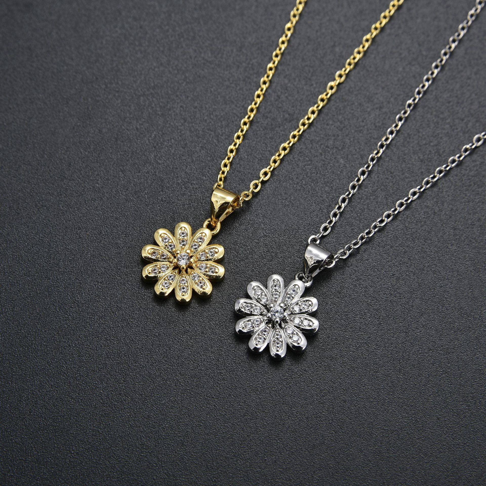 Collier en laiton cubique Zircon Micro Pave, margueritepâquerette, Placage, bijoux de mode & pavé de micro zircon, plus de couleurs à choisir, Longueur:45 cm, Vendu par PC