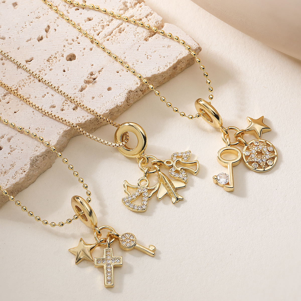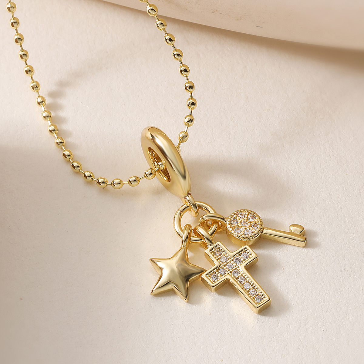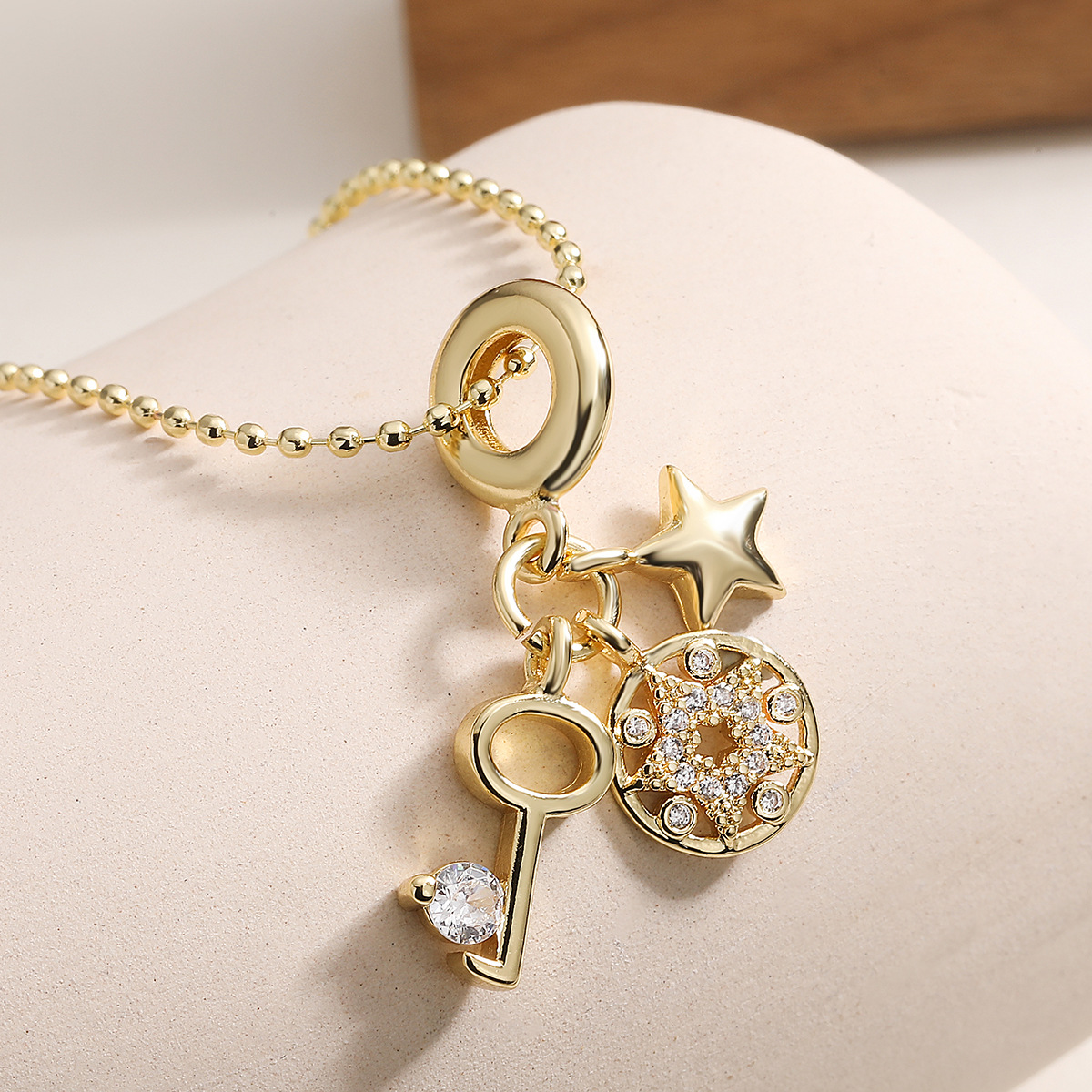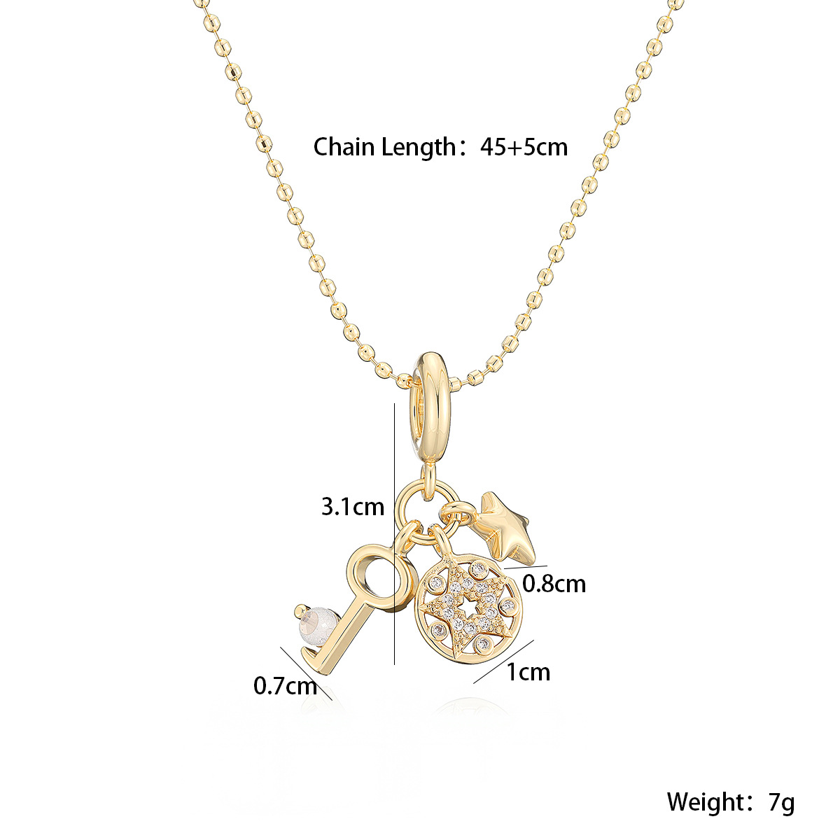 Collier en laiton cubique Zircon Micro Pave, étoile, Placage de couleur d'or, pavé de micro zircon & pour femme, protéger l'environnement, sans nickel, plomb et cadmium, 15mm,11mm pouce, Vendu par PC