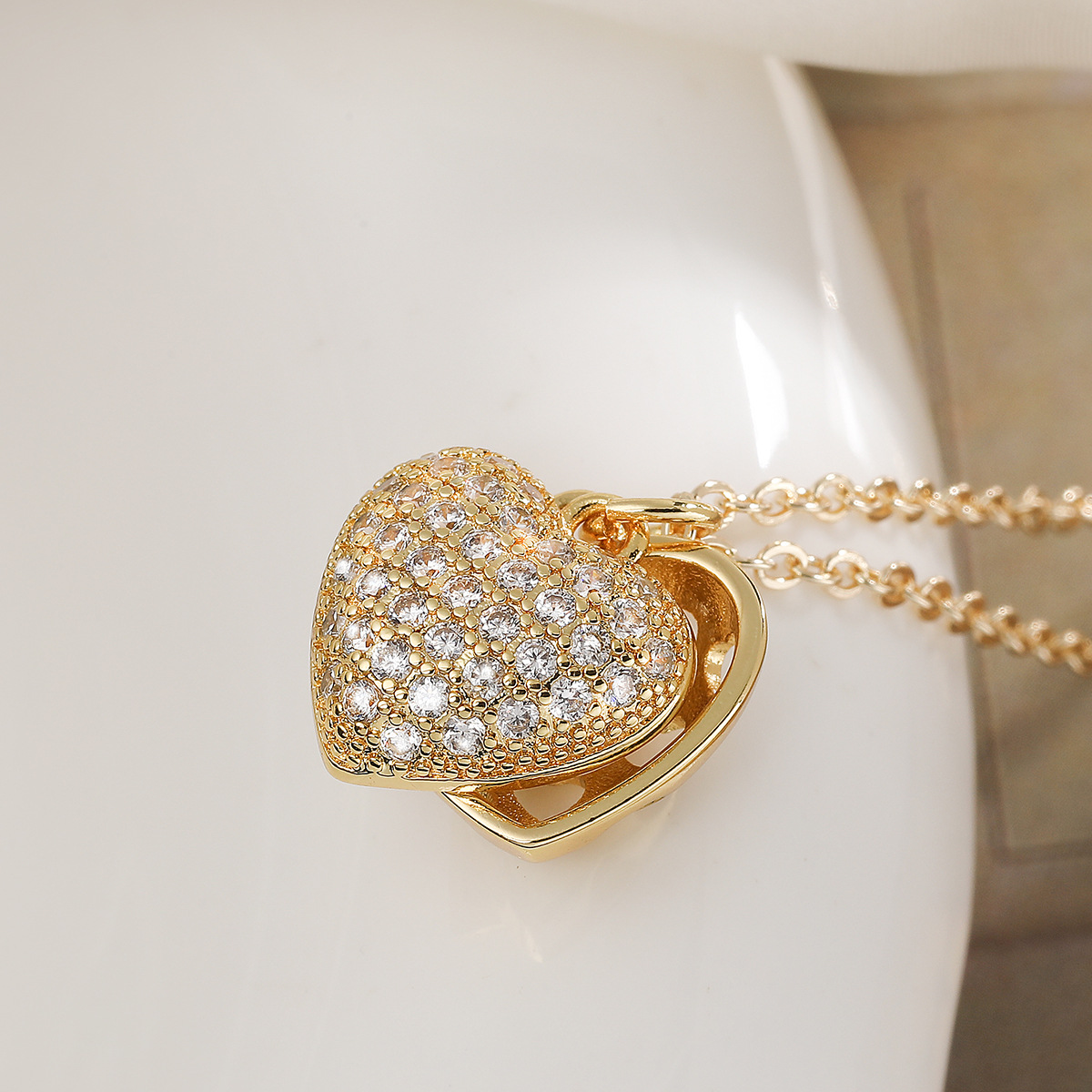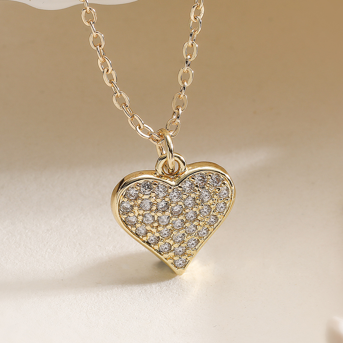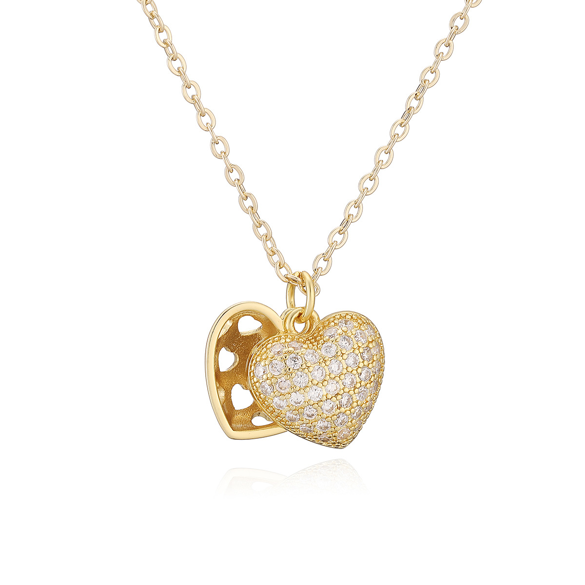 Collier en laiton cubique Zircon Micro Pave, coeur, Plaqué d'or, chaîne ovale & pavé de micro zircon & pour femme, sans plomb et cadmium, 40cm Environ 15.5 pouce, Vendu par brin
