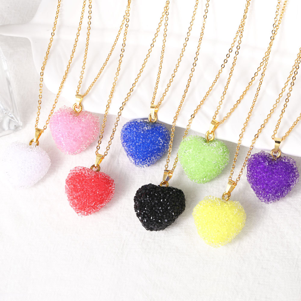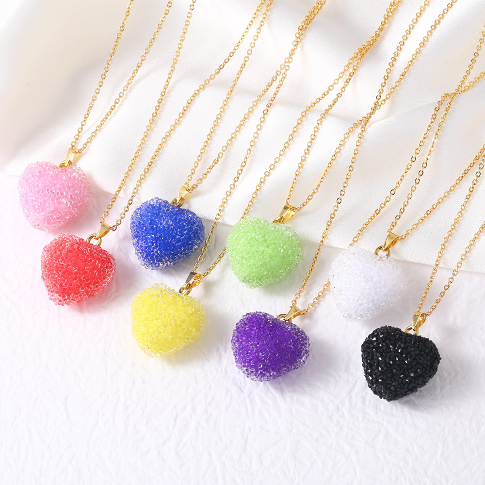 Collier en laiton fait à la main, avec Acrylique, avec 5cm chaînes de rallonge, coeur, Placage de couleur d'or, bijoux de mode, plus de couleurs à choisir, Longueur:45 cm, Vendu par PC