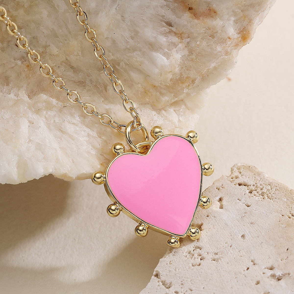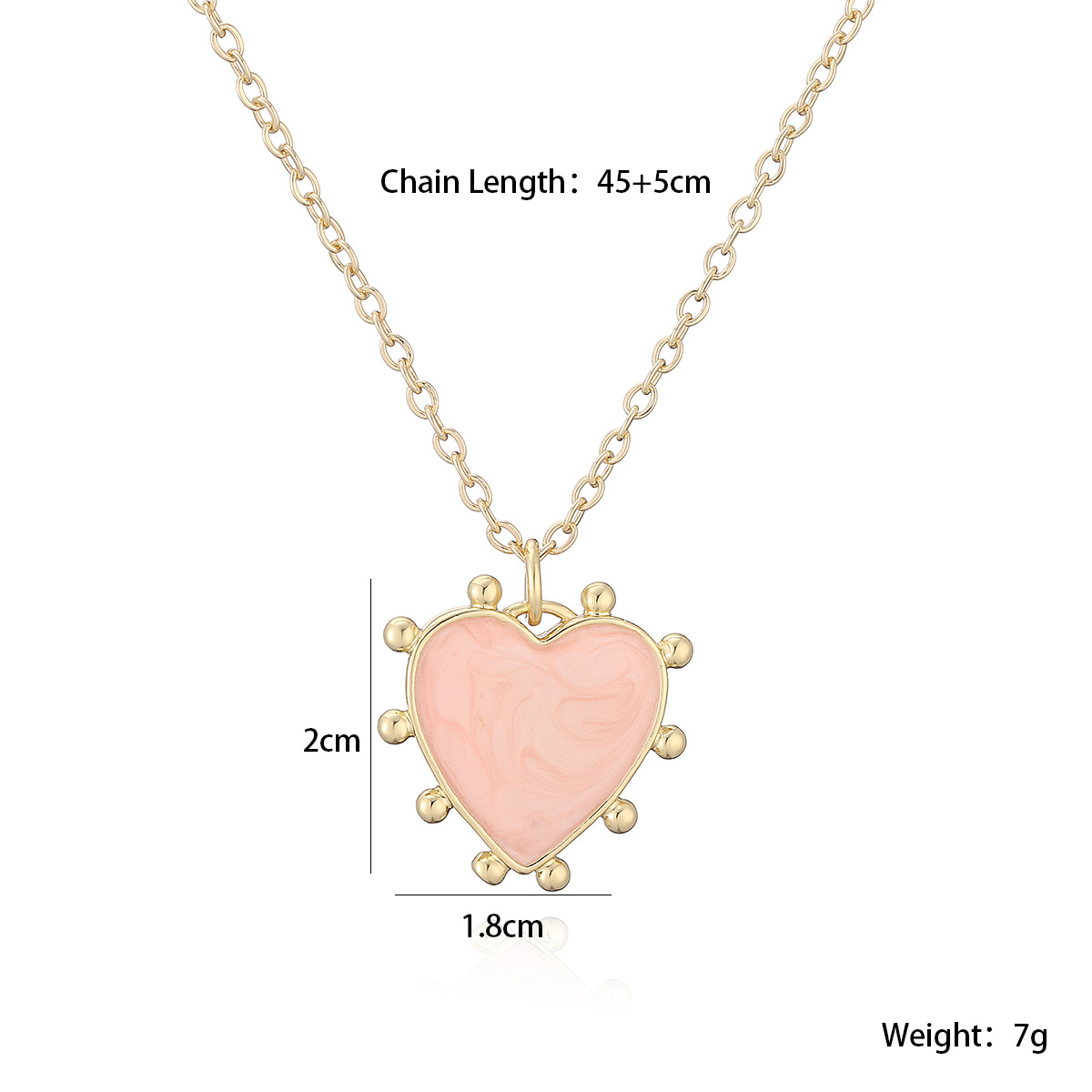 Collier en laiton fait à la main, avec 5cm chaînes de rallonge, coeur, Plaqué d'or, bijoux de mode & réglable & pour femme & émail, plus de couleurs à choisir, 18x20mm, Longueur:Environ 45 cm, Vendu par brin