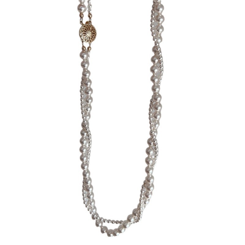 Collier en perles de verre Pull, perle de verre, avec alliage de zinc, Rond, Placage de couleur d'or, bijoux de mode, plus de couleurs à choisir, 3-6MM, Longueur:50 cm, Vendu par brin