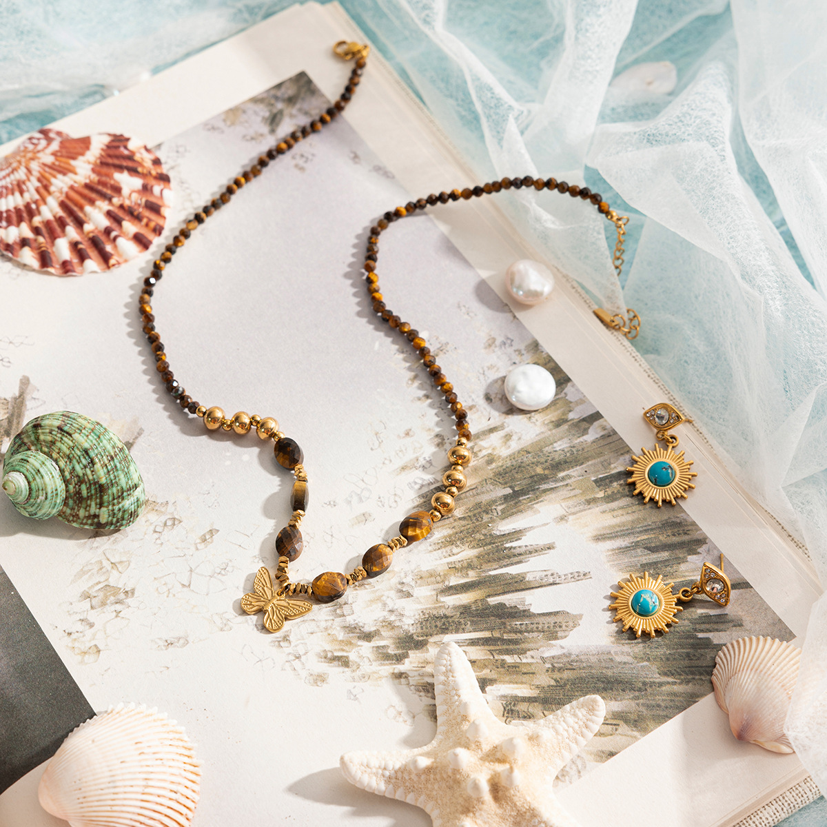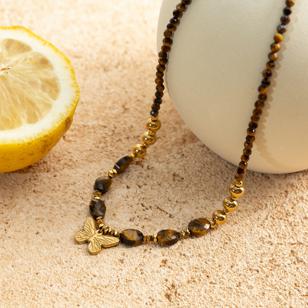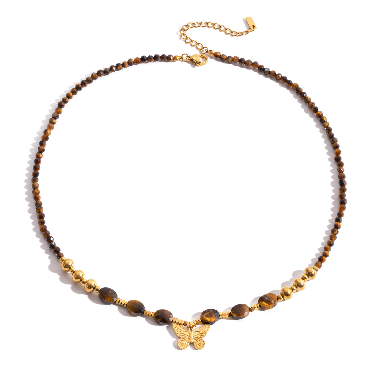 Collier oeil de tigre, Acier inoxydable 304, avec oeil de tigre, Plaqué or 18K, bijoux de mode & styles différents pour le choix & pour femme, Vendu par PC