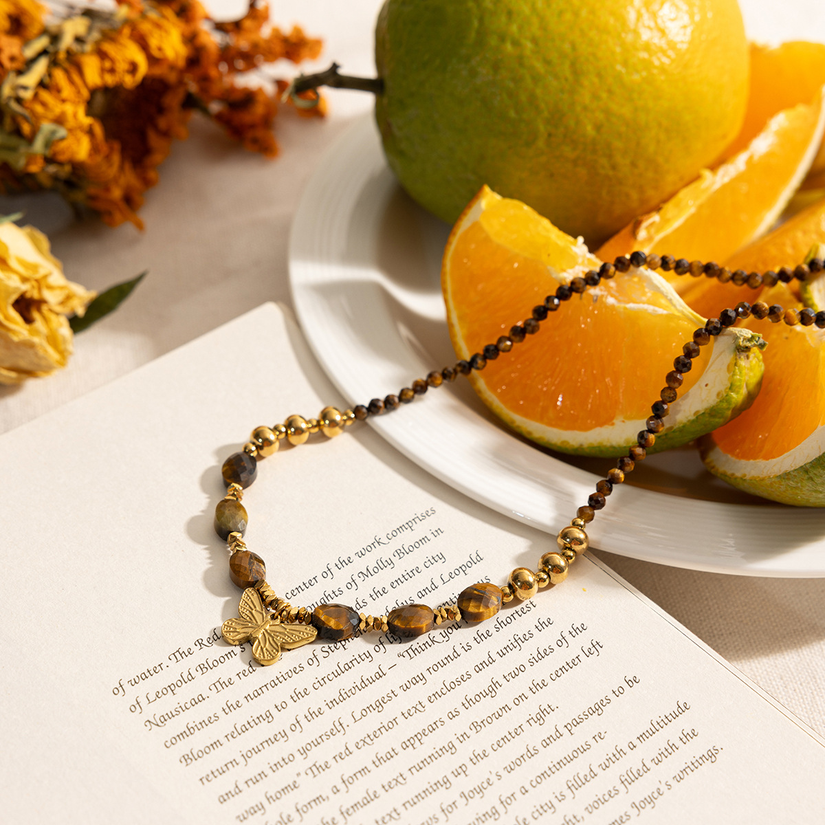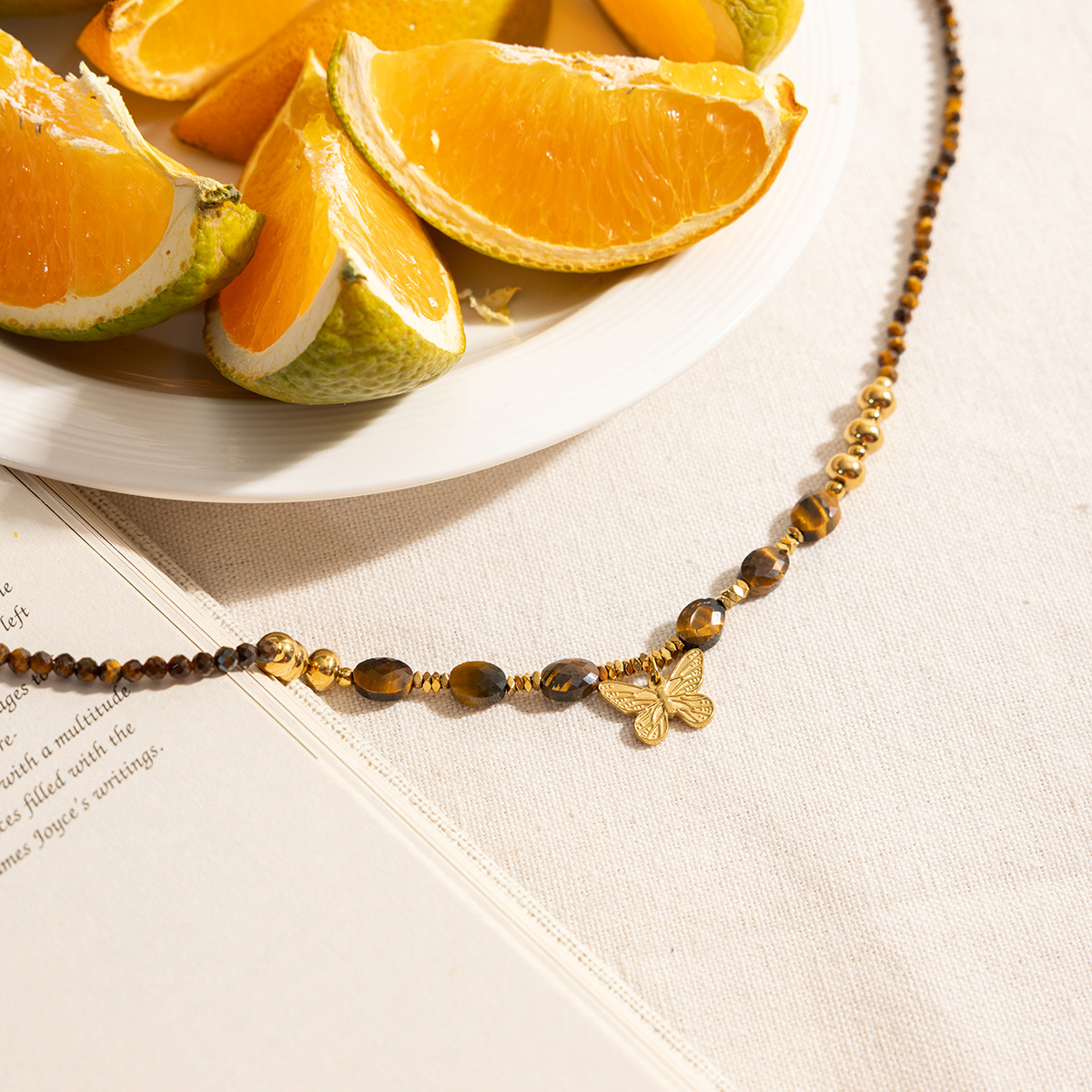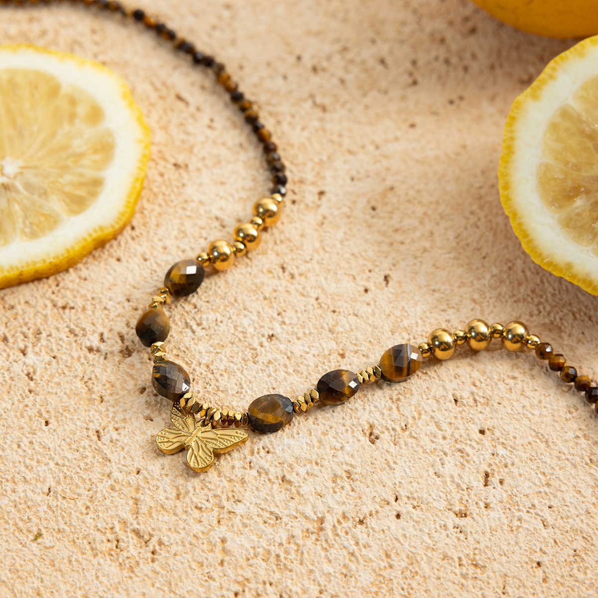 Collier oeil de tigre, Acier inoxydable 304, avec oeil de tigre, Plaqué or 18K, bijoux de mode & styles différents pour le choix & pour femme, Vendu par PC