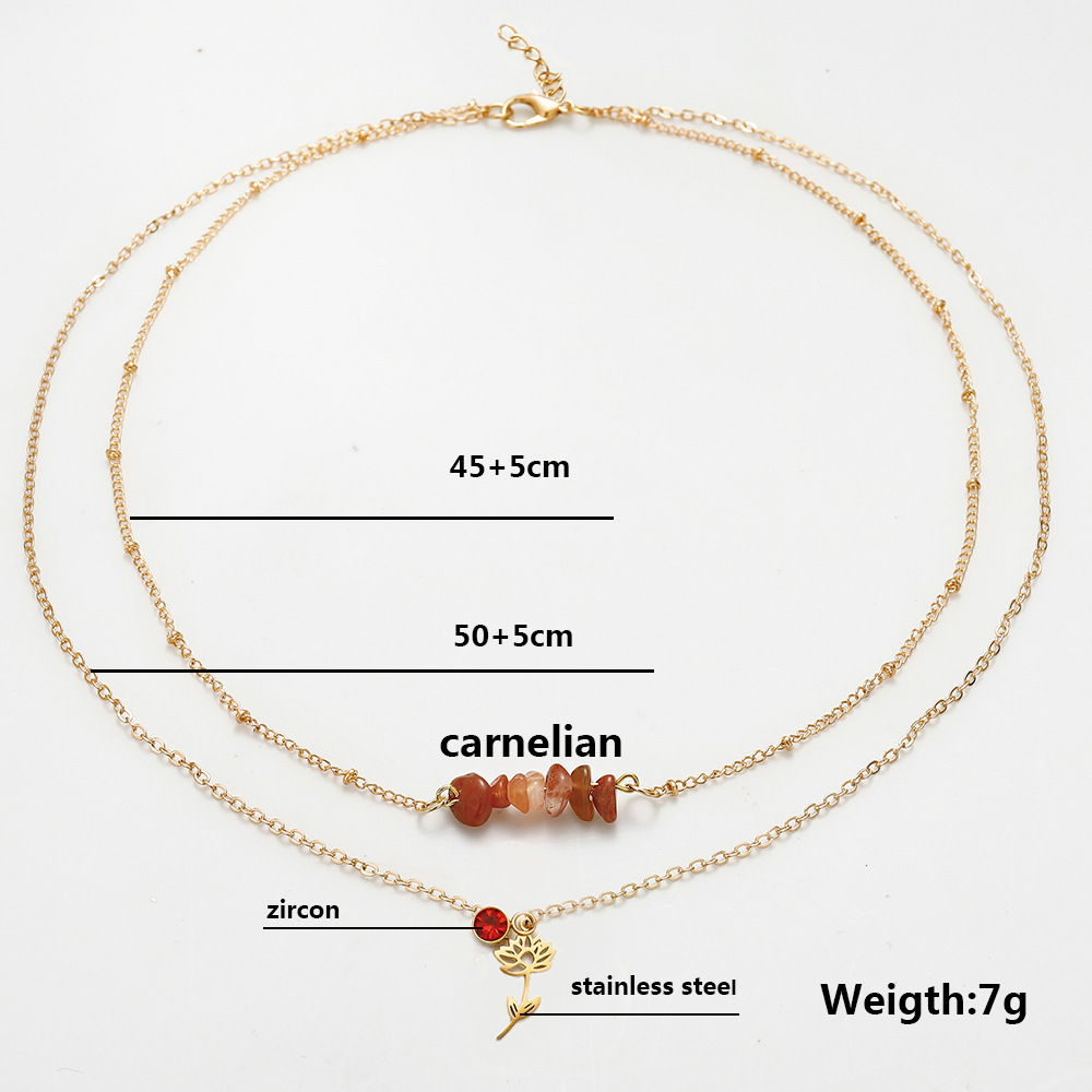 Colliers de pierres précieuses, Acier inoxydable 304, avec Pierre naturelle, fait à la main, Double couche & différents matériaux pour le choix & pavé de micro zircon & pour femme, Or, Vendu par PC
