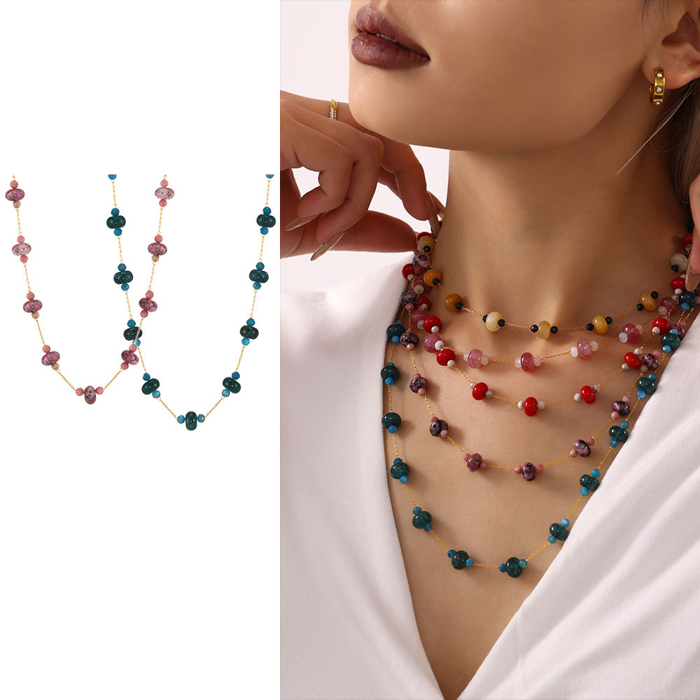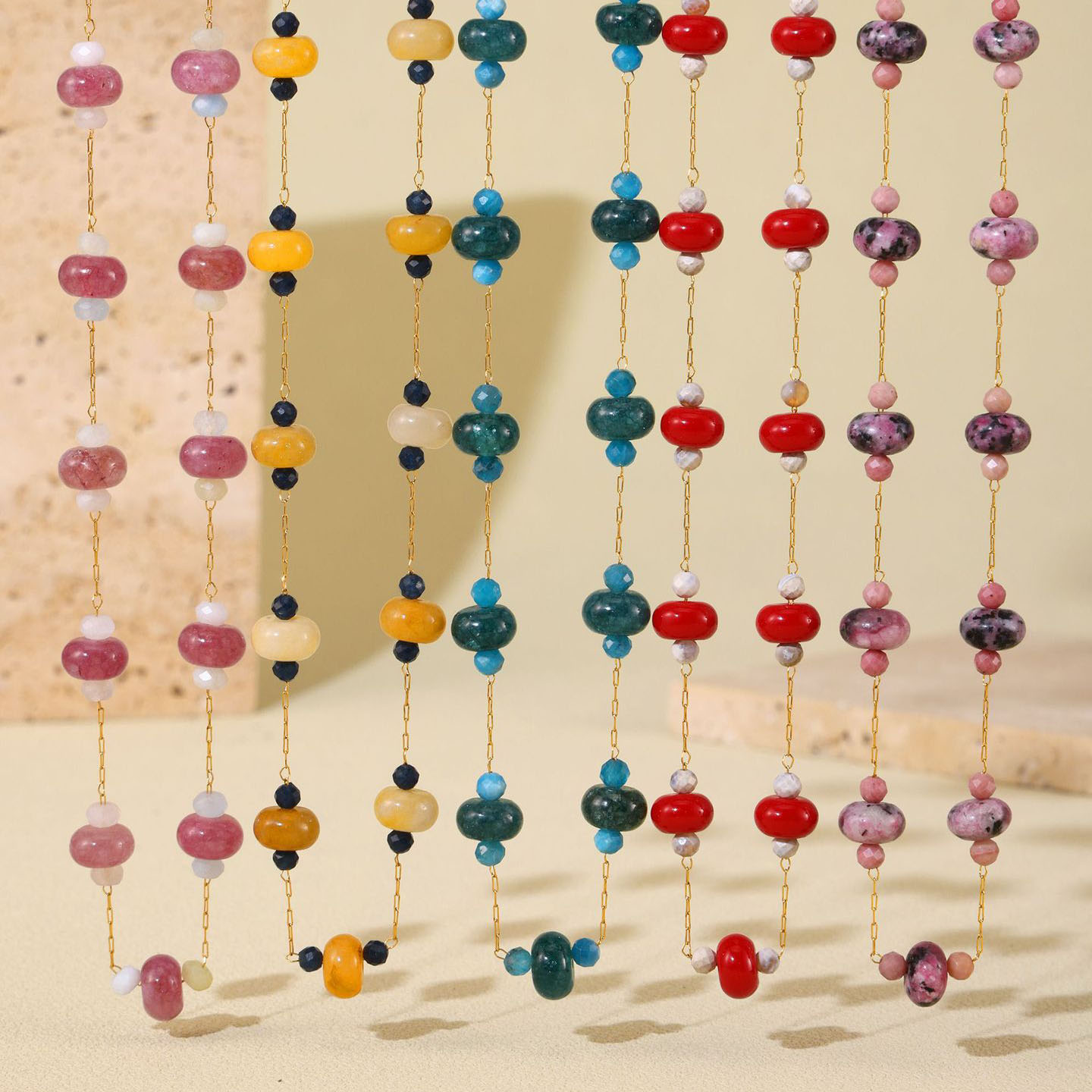 Colliers de pierres précieuses, Acier inoxydable 304, avec Pierre naturelle, avec 5cm chaînes de rallonge, Plaqué or 18K, bijoux de mode & pour femme, plus de couleurs à choisir, Longueur:Environ 40 cm, Vendu par PC