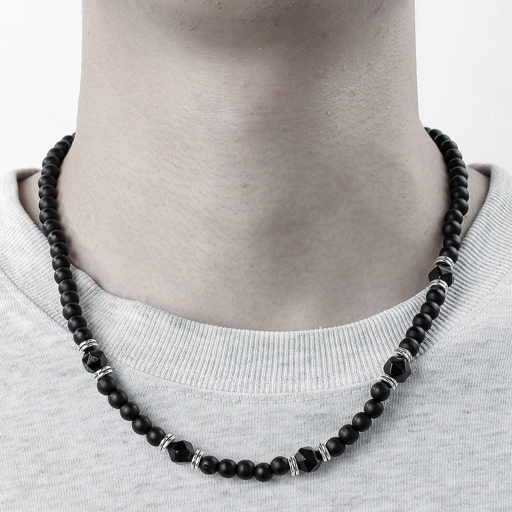 Colliers de pierres précieuses, lave volcanique, avec Abrazine Stone & argile de polymère & pierre gemme, Placage de couleur argentée, styles différents pour le choix & pour homme, plus de couleurs à choisir, Vendu par PC