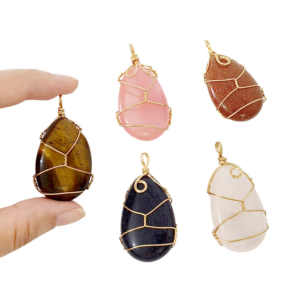 Colliers de pierres précieuses, pierre gemme, avec 2lnch chaînes de rallonge, pendule, Placage de couleur d'or, naturel & différents matériaux pour le choix & chaîne ovale, 36- Environ 18 pouce, Vendu par brin