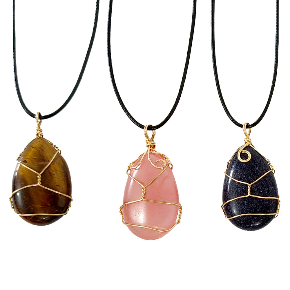 Colliers de pierres précieuses, Pierre naturelle, avec cuir PU, larme, Placage, différents matériaux pour le choix & unisexe, plus de couleurs à choisir, Longueur:45 cm, Vendu par PC