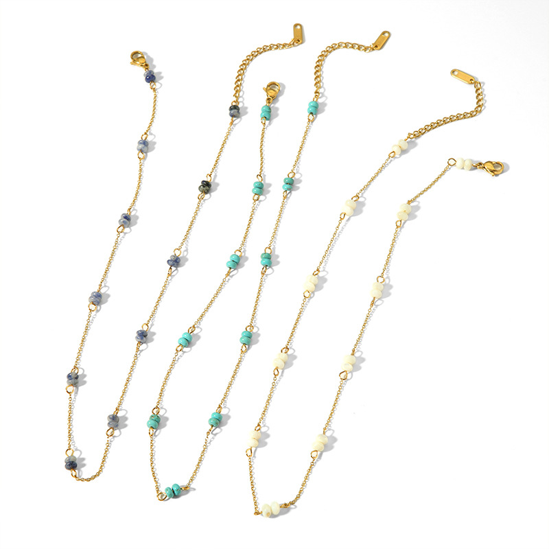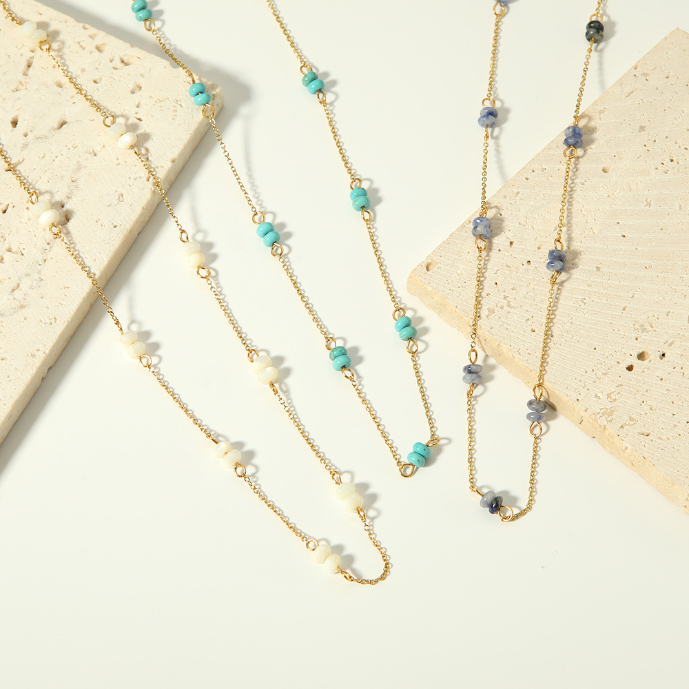 Colliers de pierres précieuses, Acier inoxydable 304, avec Pierre naturelle, avec 5cm chaînes de rallonge, Placage de couleur d'or, bijoux de mode & pour femme, plus de couleurs à choisir, Longueur:40 cm, Vendu par PC