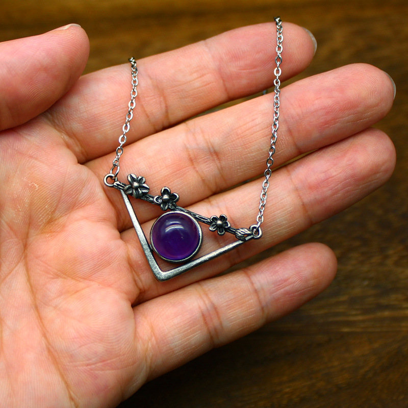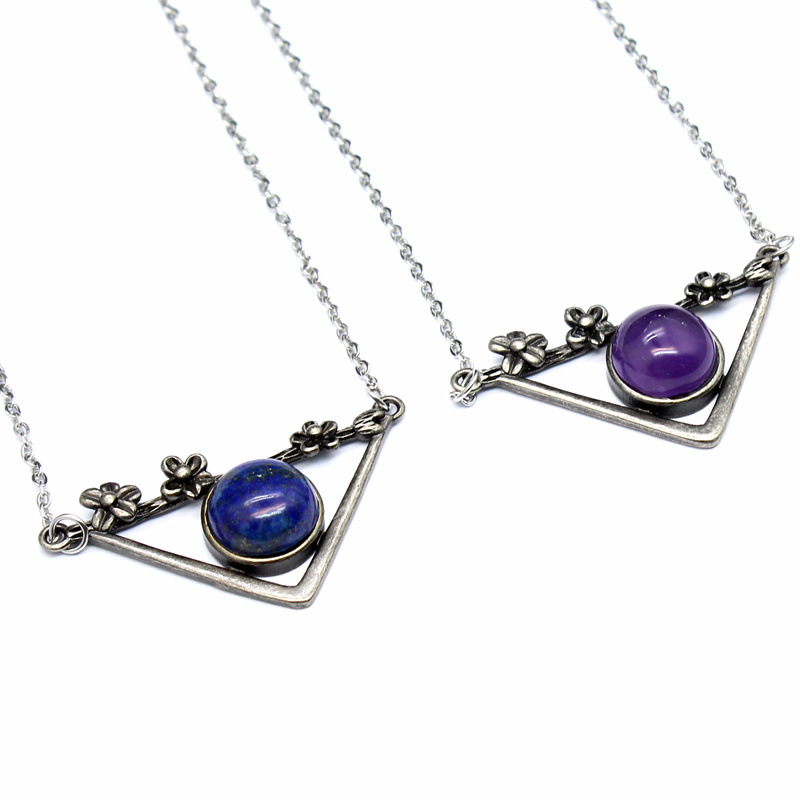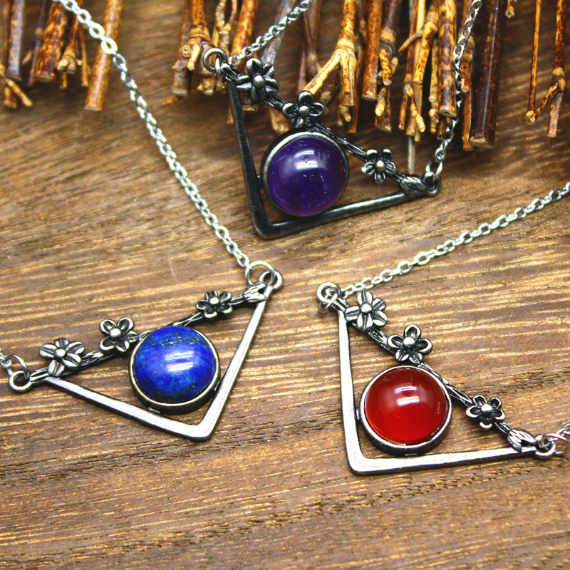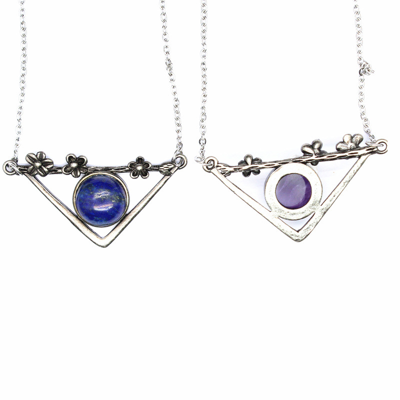 Colliers de pierres précieuses, alliage de zinc, avec Pierre naturelle, triangle, Placage, différents matériaux pour le choix & pour femme, plus de couleurs à choisir, 38x20x6mm, Longueur:50 cm, Vendu par PC