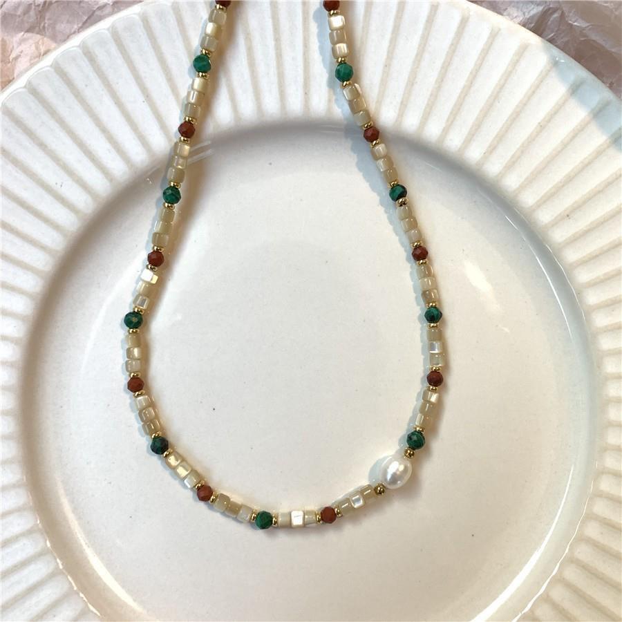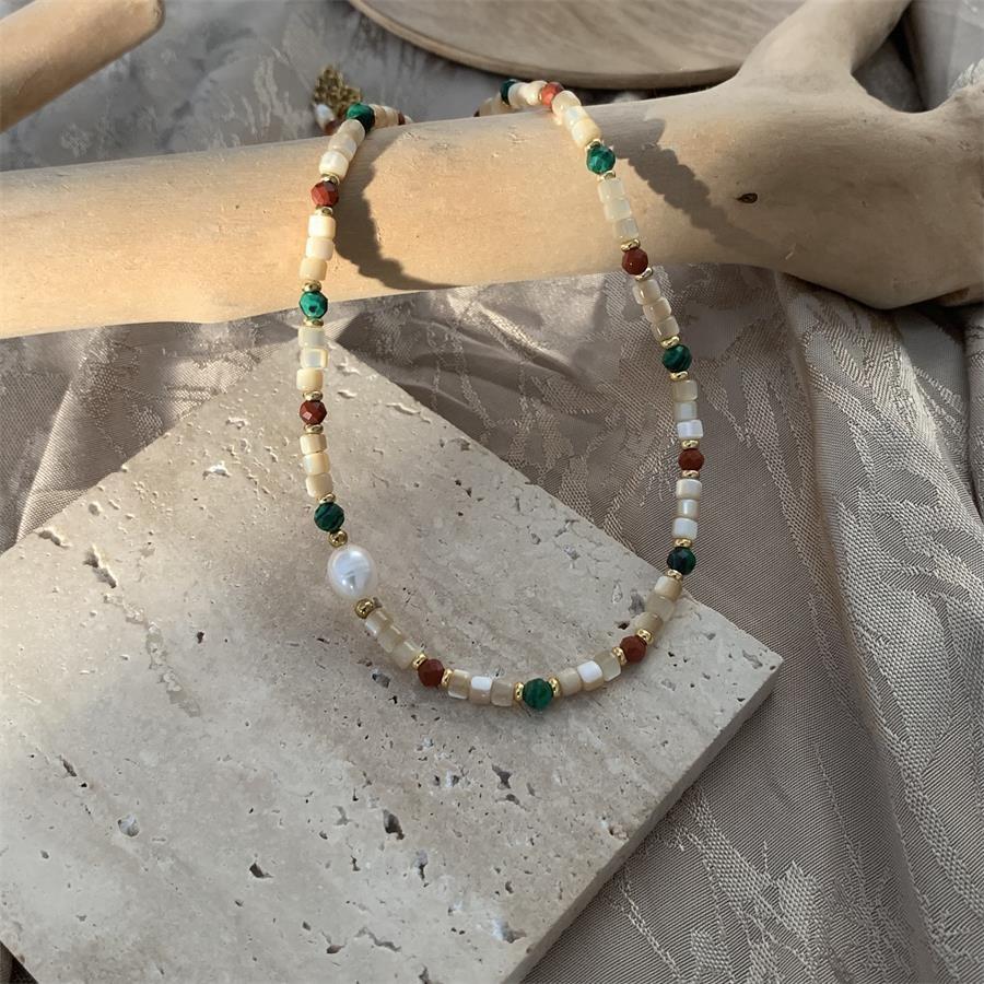 Colliers de pierres précieuses, laiton, avec pierre gemme & coquille & perle de plastique, Placage ionique sous vide, pour femme, Longueur:43 cm, Vendu par PC