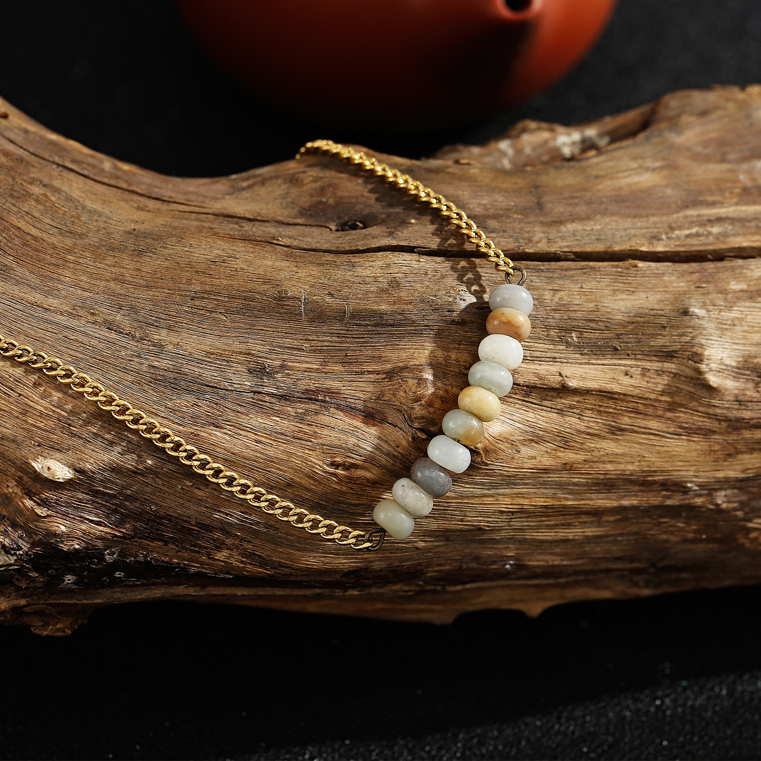Colliers de pierres précieuses, laiton, avec Amazonite, Placage de couleur d'or, pour femme, couleurs mélangées, Longueur:46 cm, Vendu par PC