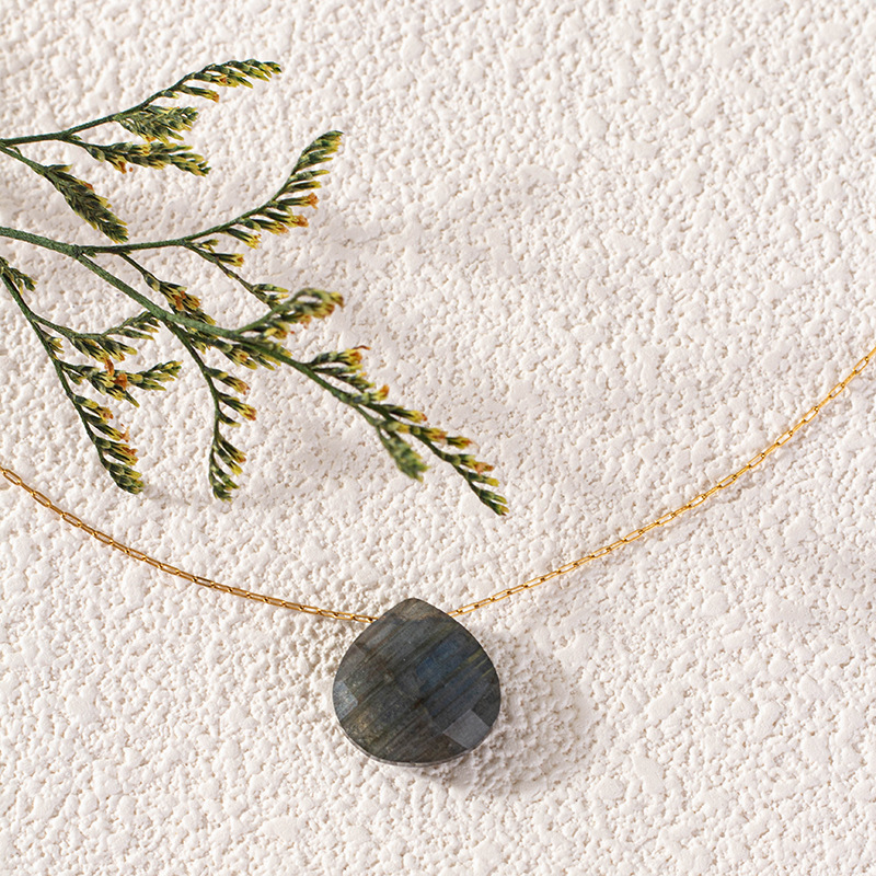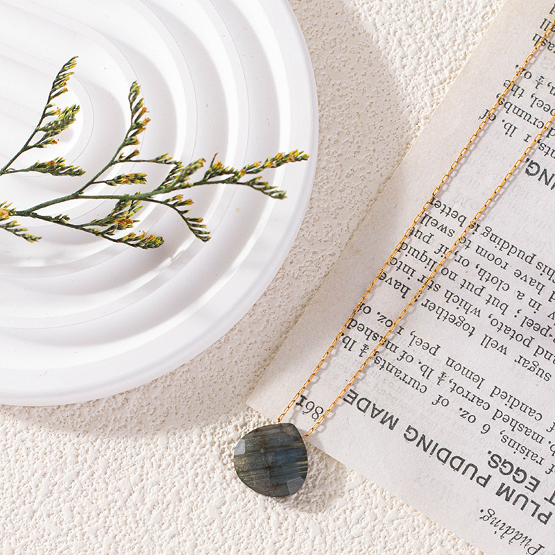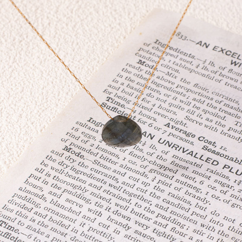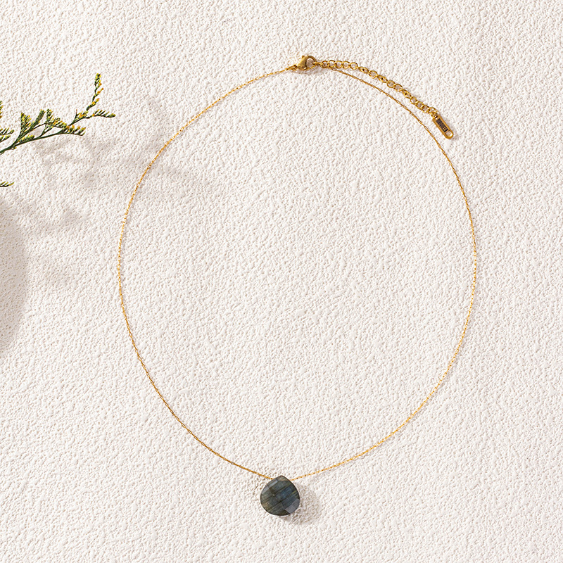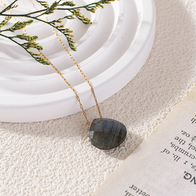 Colliers de pierres précieuses, laiton, avec Labradorite, Placage de couleur d'or, pour femme, noire, Longueur:46 cm, Vendu par PC