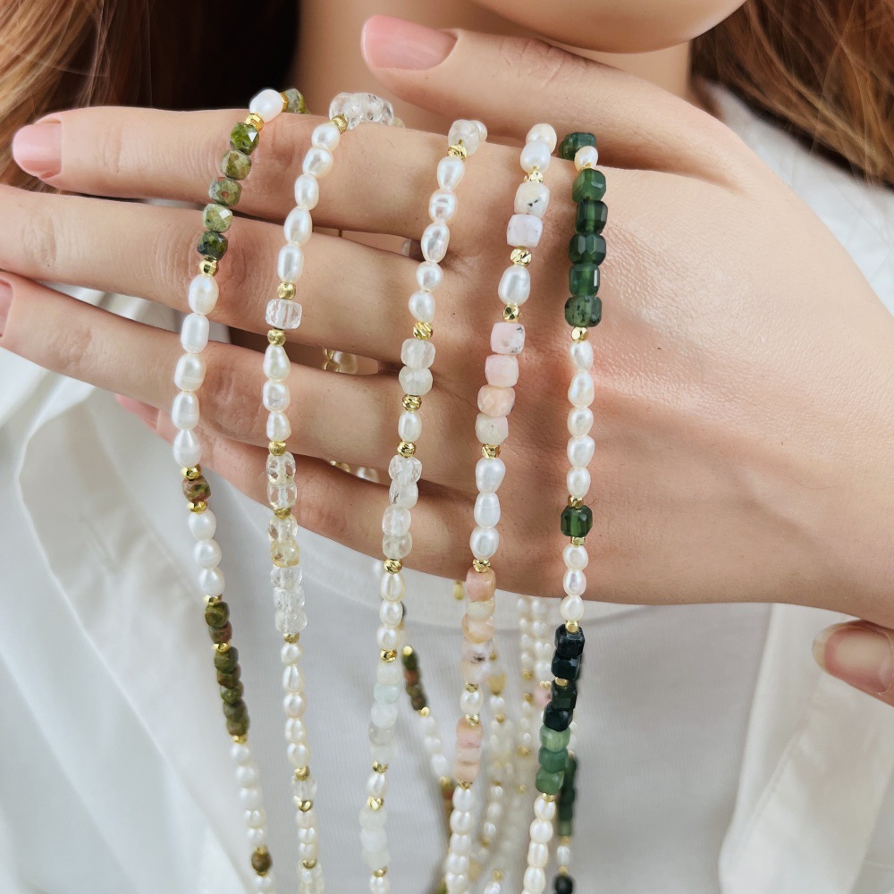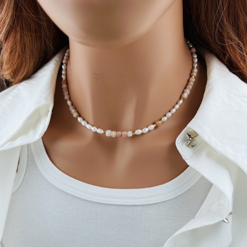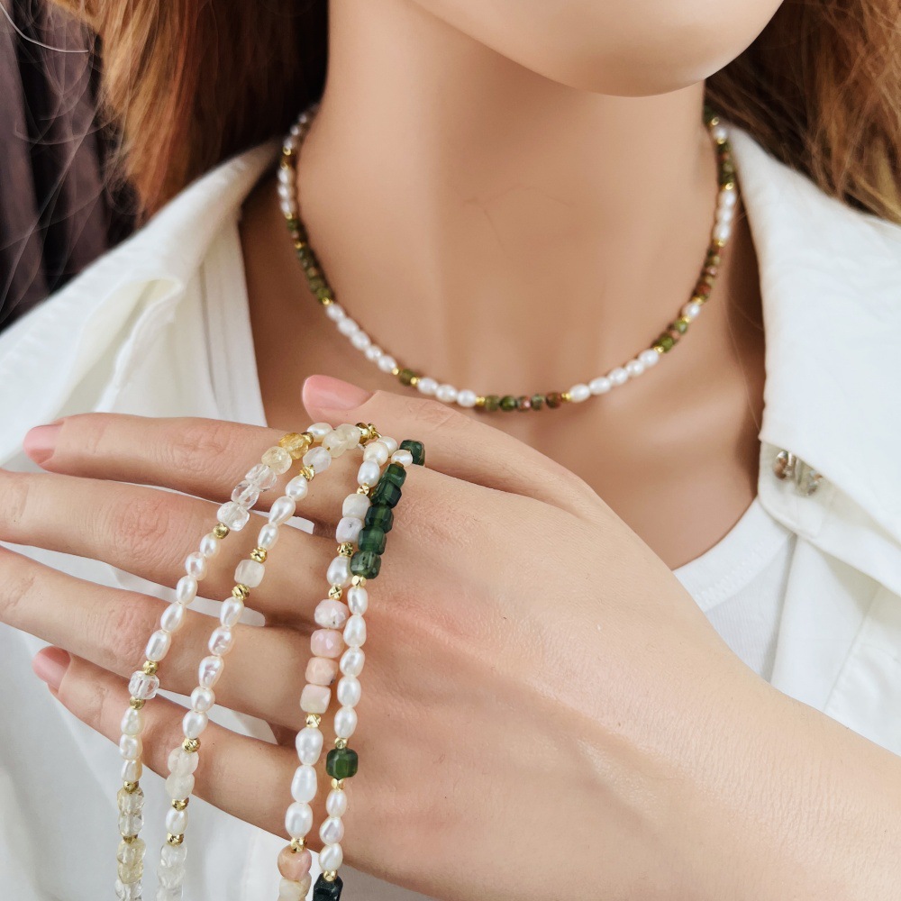 Colliers de pierres précieuses, laiton, avec Pierre naturelle & perle d'eau douce cultivée, Placage de couleur d'or, différents matériaux pour le choix & pour femme, plus de couleurs à choisir, Vendu par PC