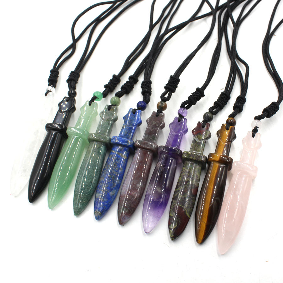 Colliers de pierres précieuses, Pierre naturelle, avec Cordon de noeud, DIY & différents matériaux pour le choix, plus de couleurs à choisir, 7x15x70mm, Longueur:62 cm, Vendu par PC