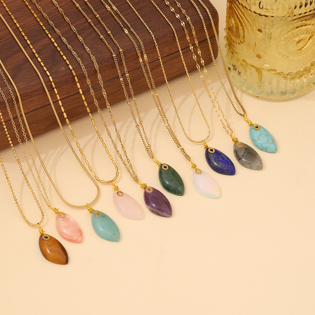 Colliers de pierres précieuses, Acier inoxydable 304, avec Pierre naturelle, avec 5cm chaînes de rallonge, Placage de couleur d'or, bijoux de mode & différents matériaux pour le choix & pour femme, Longueur:40 cm, Vendu par PC