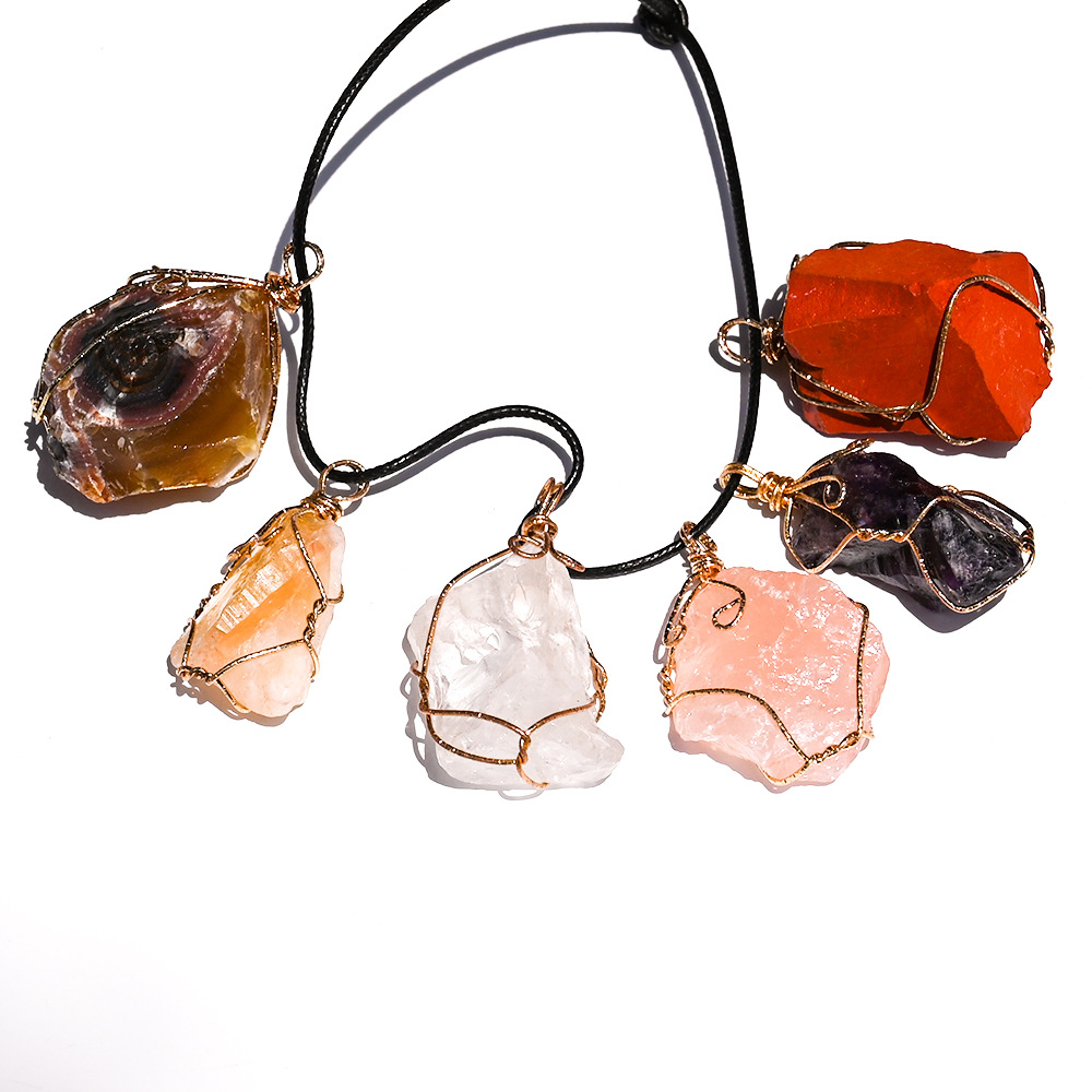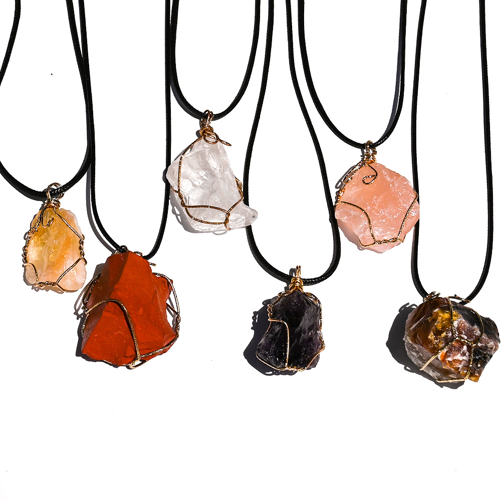 Colliers de pierres précieuses, Pierre naturelle, avec cordon en cuir & laiton, Irrégulière, différents matériaux pour le choix & unisexe, plus de couleurs à choisir, About:22-30mm, Vendu par PC