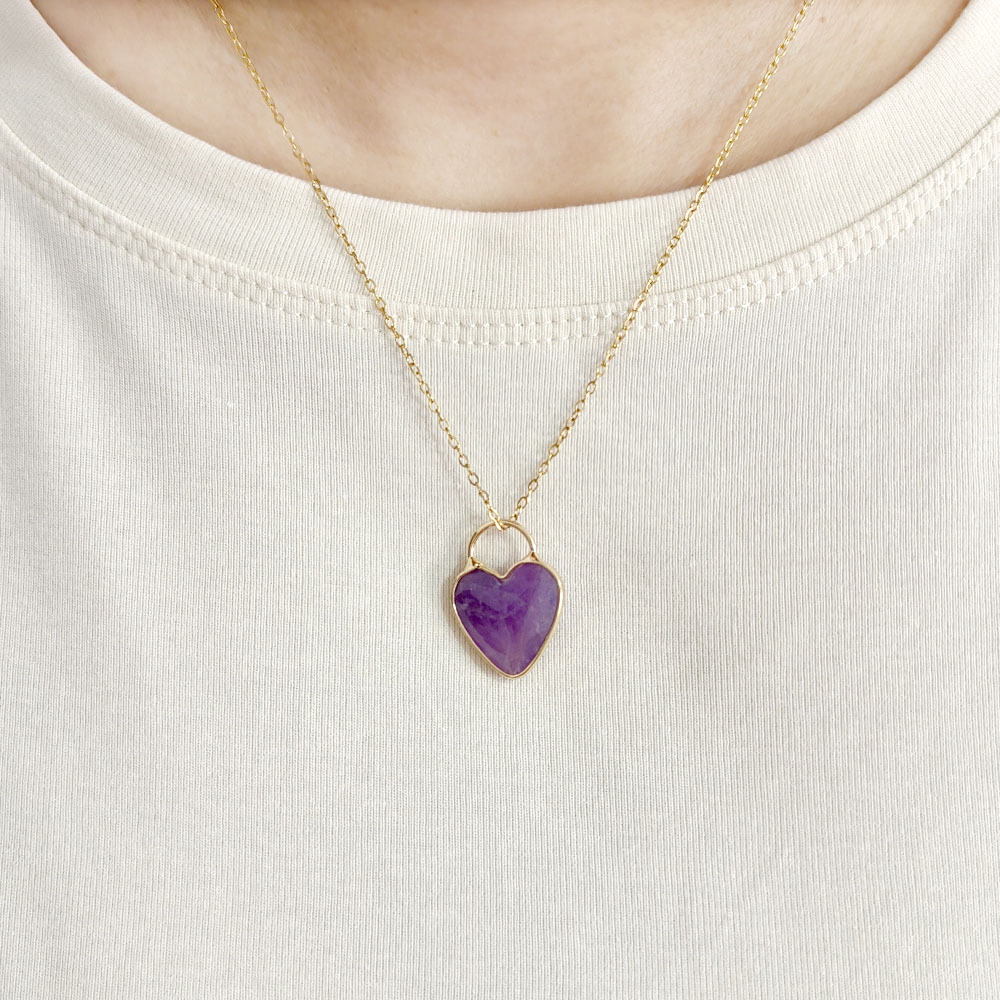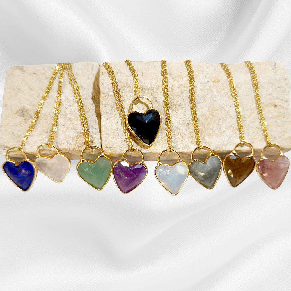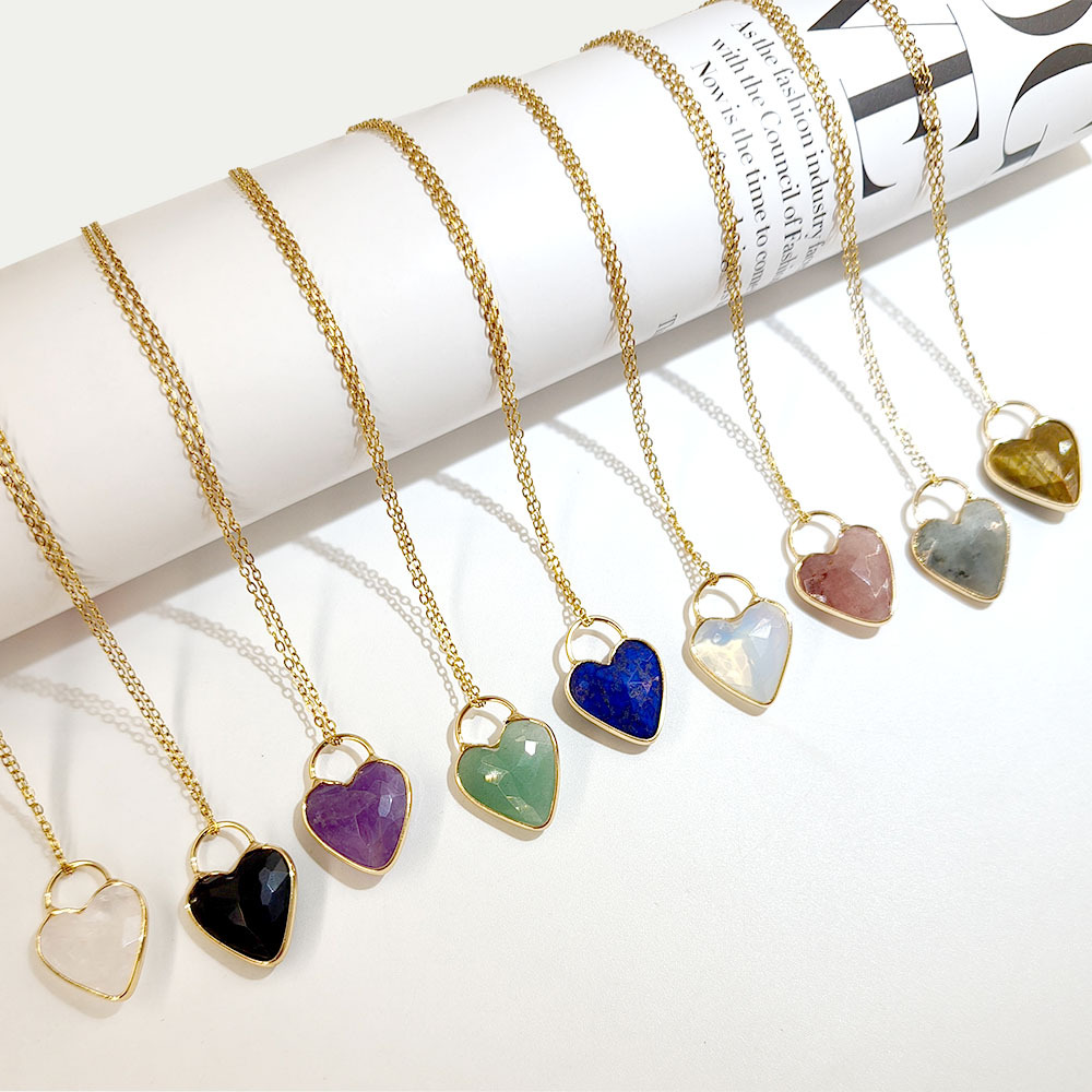 Colliers de pierres précieuses, alliage de zinc, avec Pierre naturelle, coeur, Placage de couleur d'or, bijoux de mode & différents matériaux pour le choix, plus de couleurs à choisir, Vendu par PC