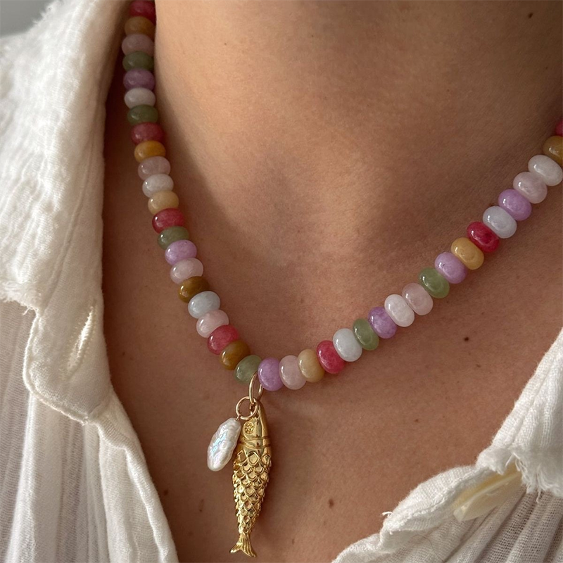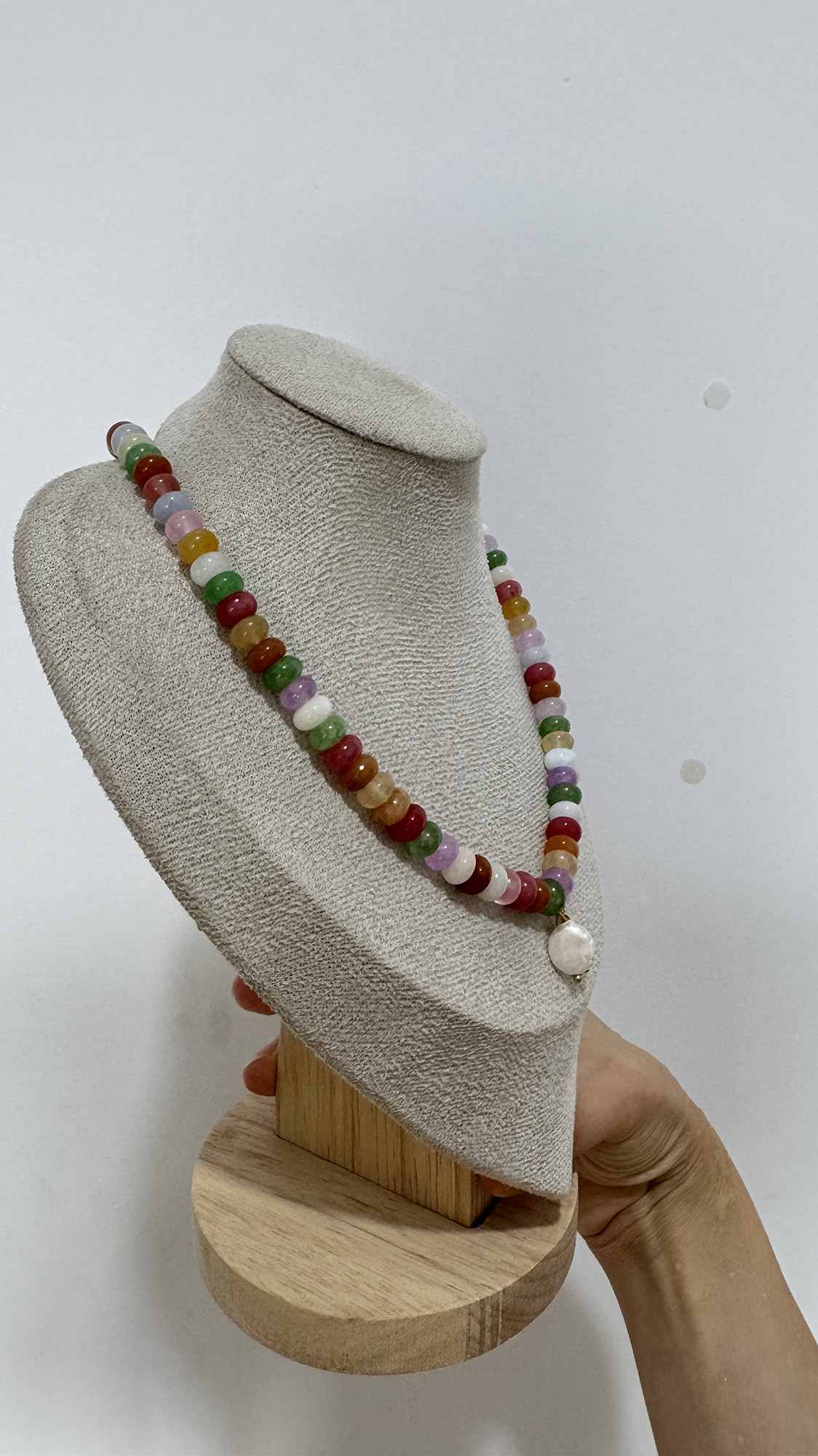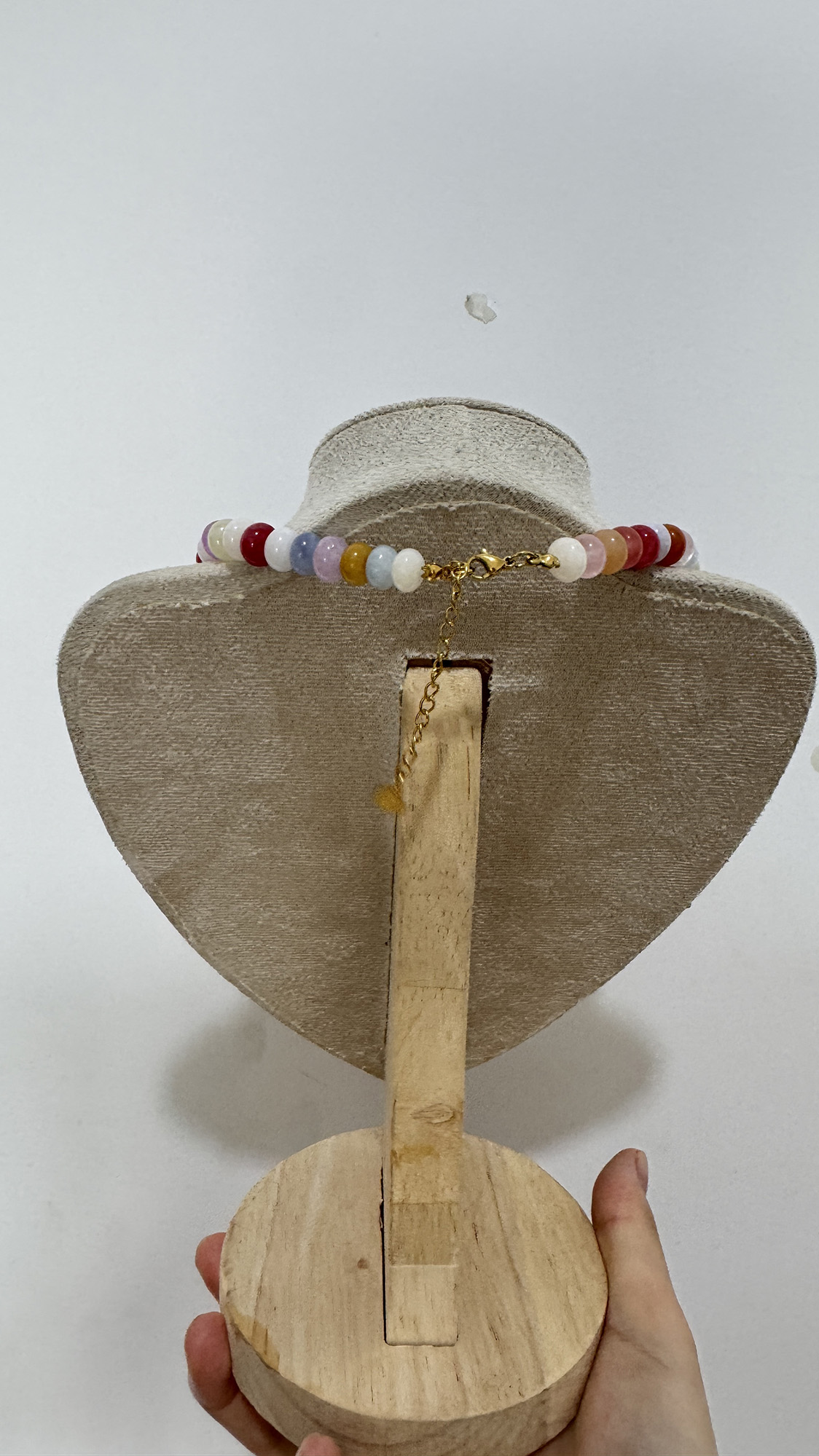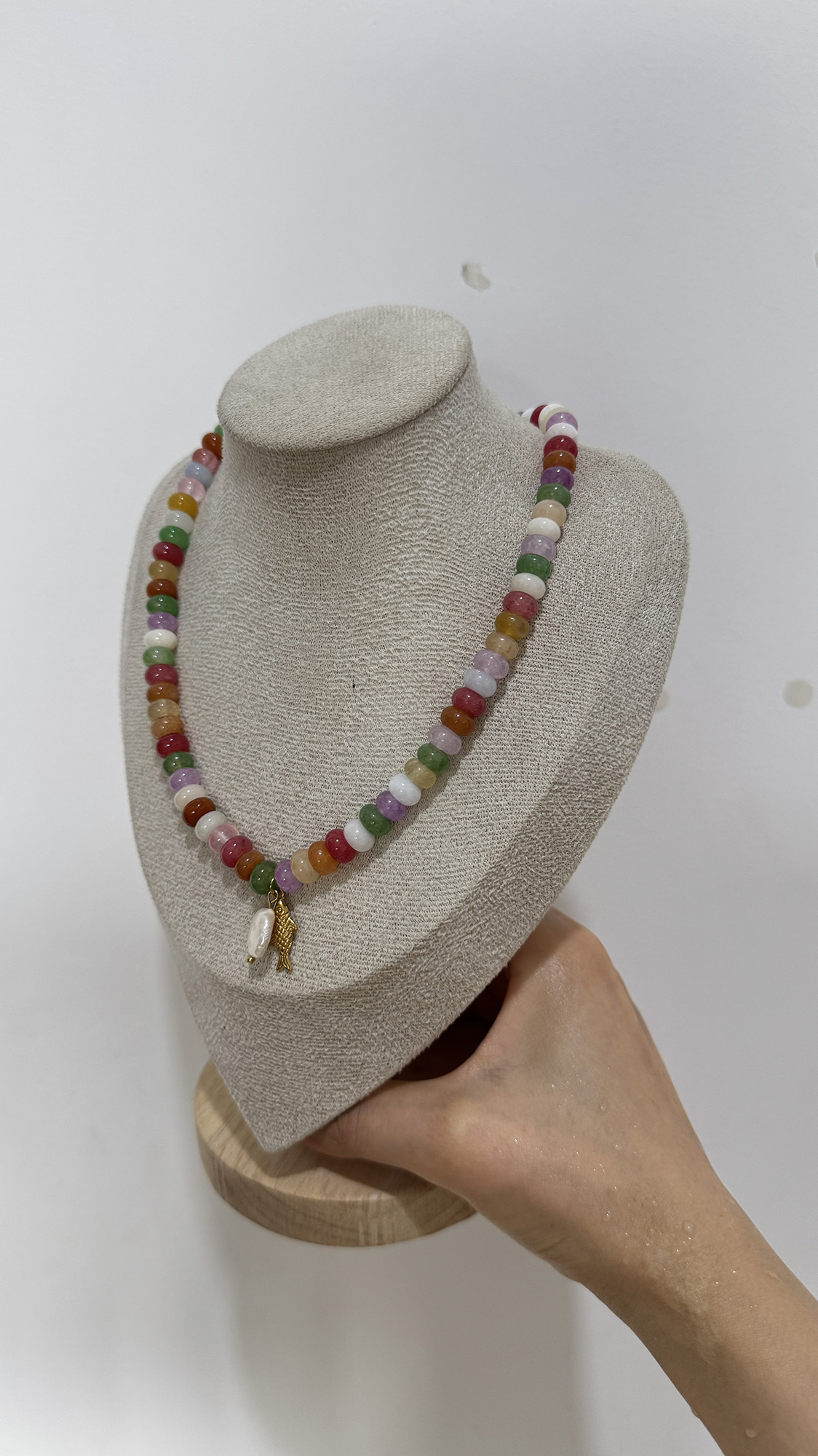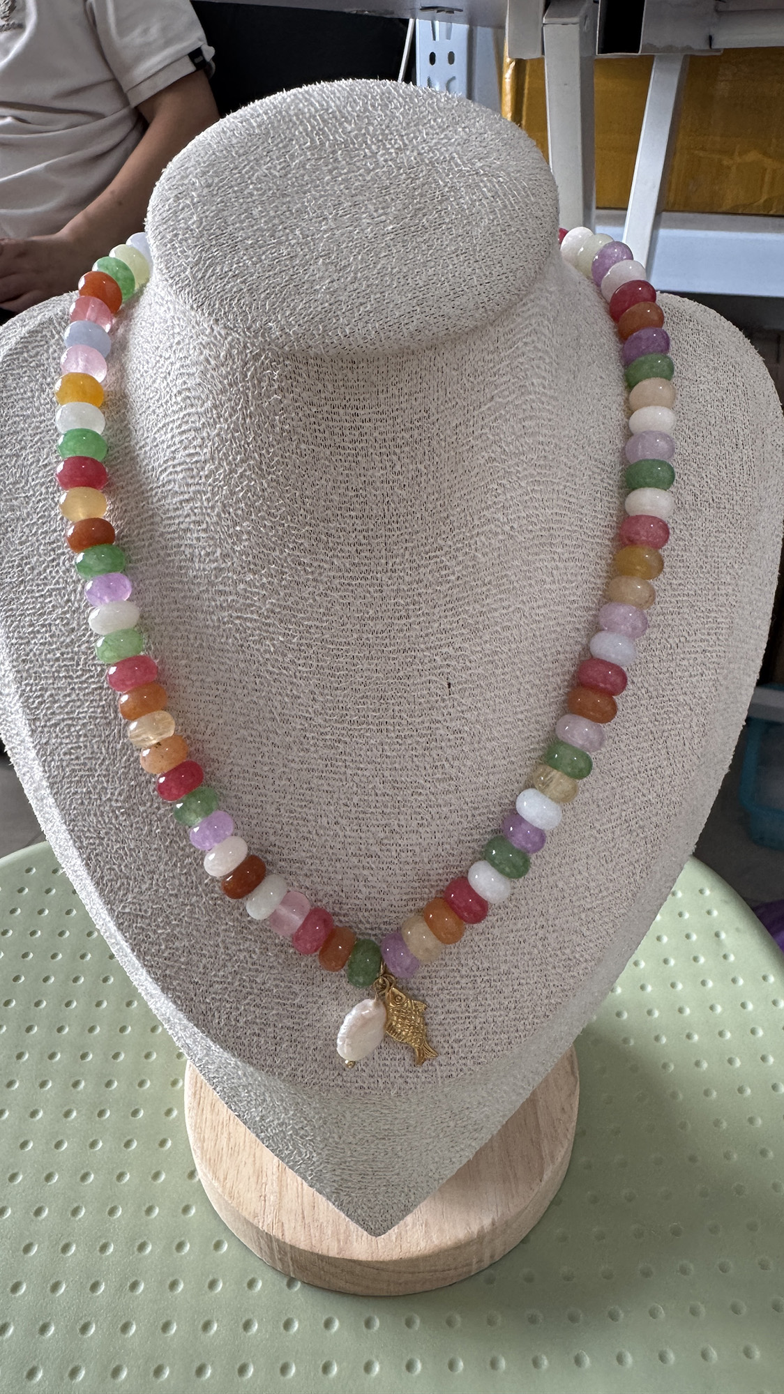 Colliers de pierres précieuses, Pierre naturelle, avec perle de plastique & Acier inoxydable 304, Placage, bijoux de mode, couleurs mélangées, 5x8mm, Vendu par PC