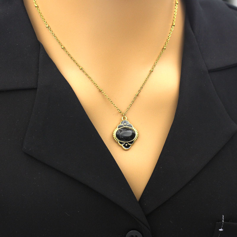 Colliers de pierres précieuses, Acier inoxydable 304, avec Pierre naturelle, Placage de couleur d'or, bijoux de mode & émail, plus de couleurs à choisir, Vendu par PC