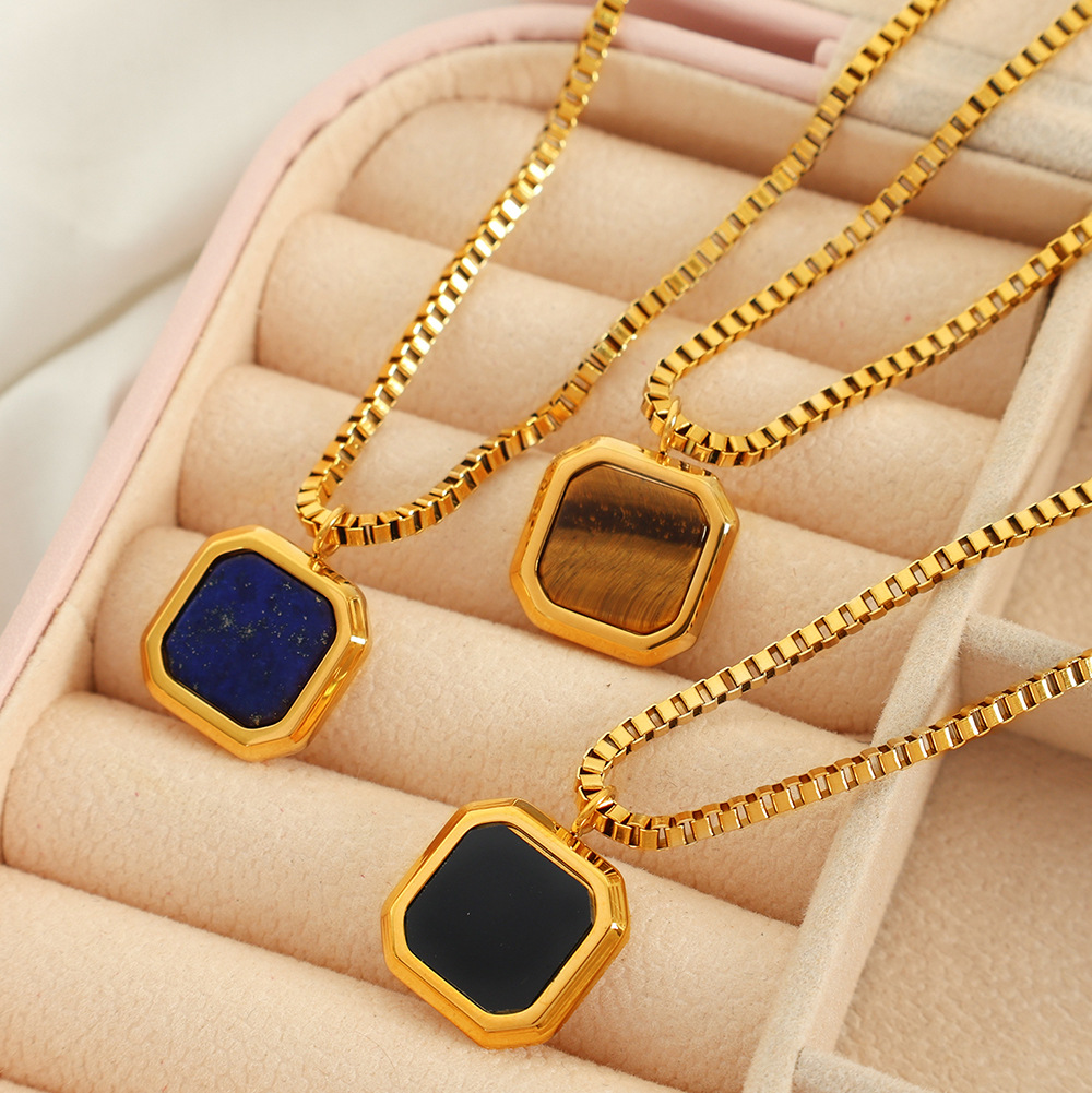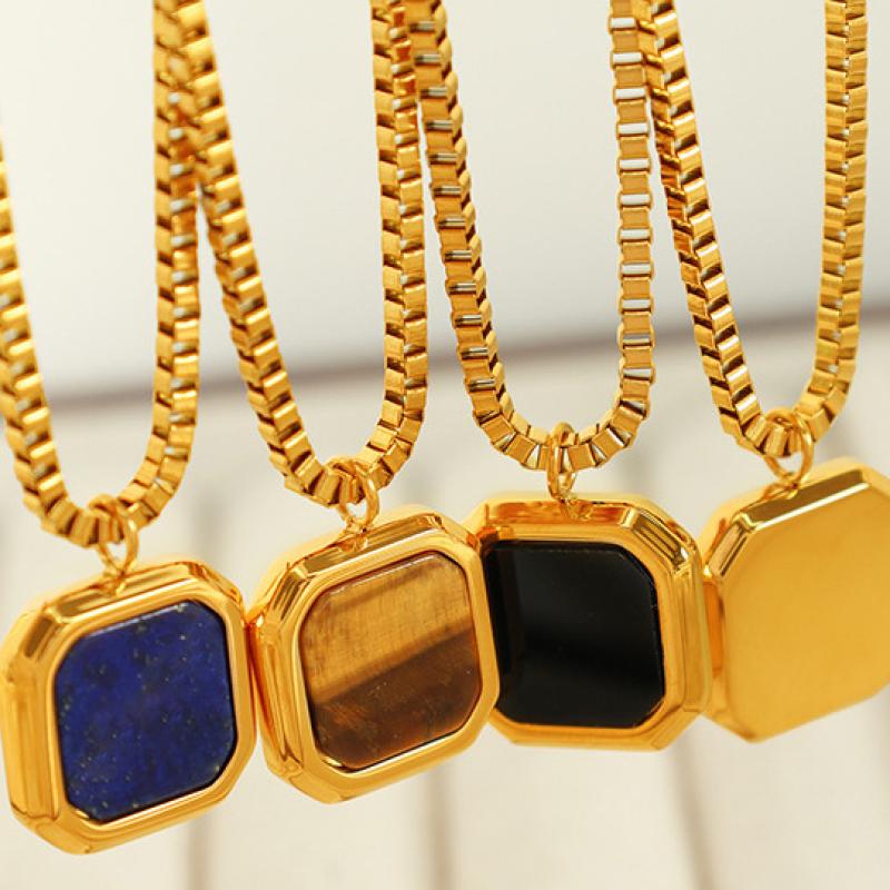 Colliers de pierres précieuses, Pierre naturelle, avec Acier inoxydable 304, Placage, bijoux de mode & différents matériaux pour le choix & pour femme, doré, Vendu par PC