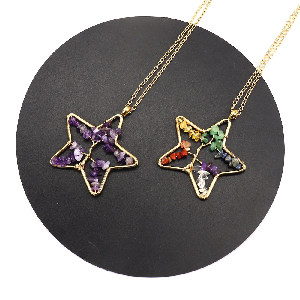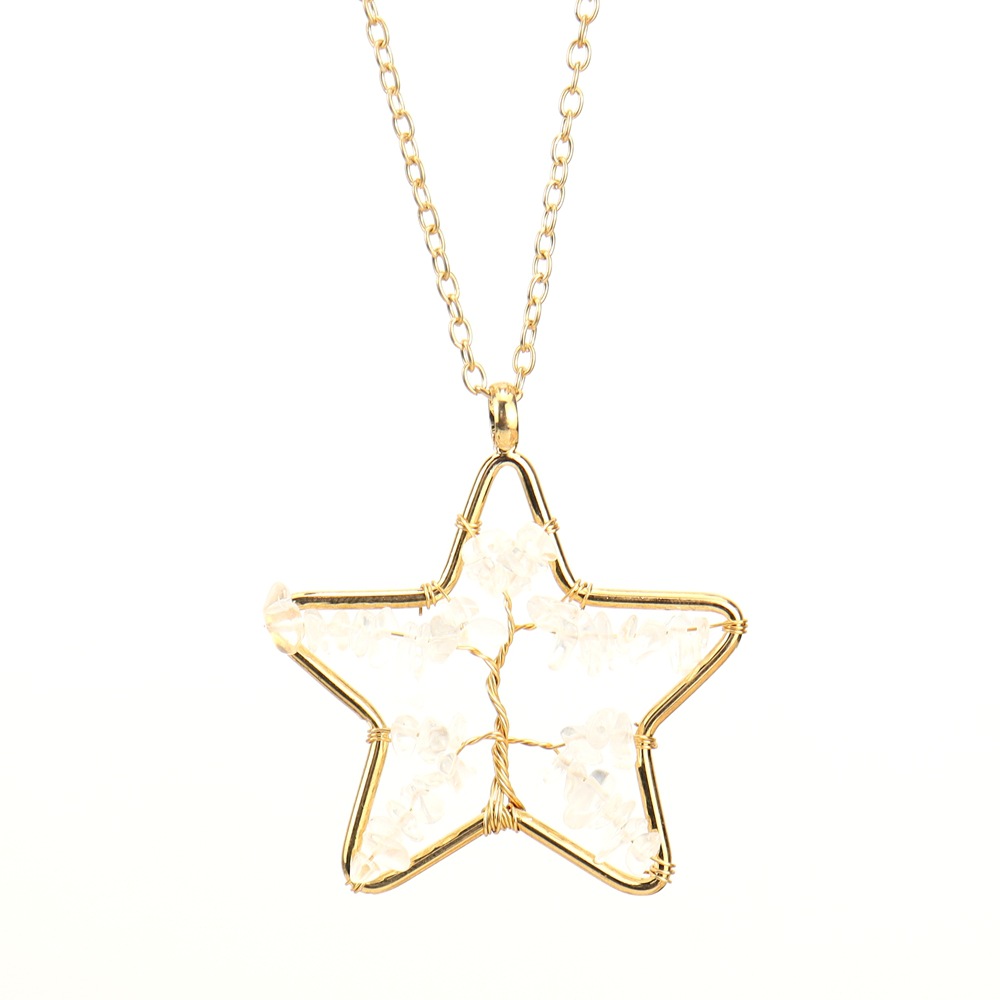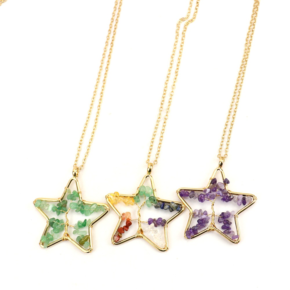 Colliers de pierres précieuses, pierre gemme, avec chaîne de fer & alliage de zinc, étoile, Placage de couleur argentée, naturel & différents matériaux pour le choix & chaîne ovale, 15mm Environ 19.5 pouce, Vendu par brin