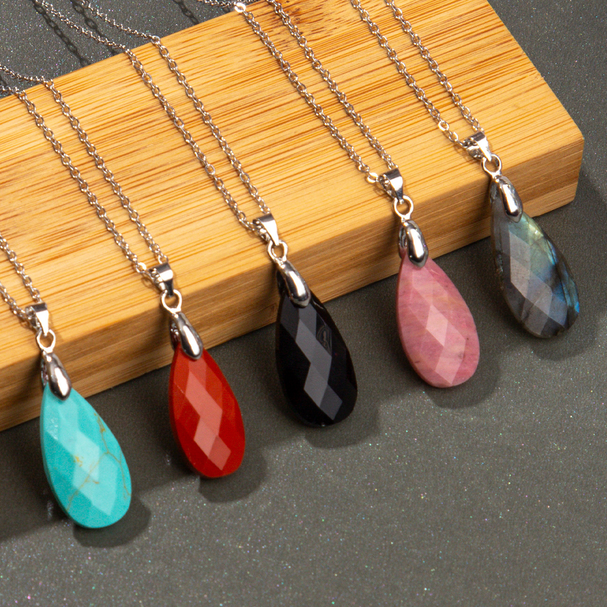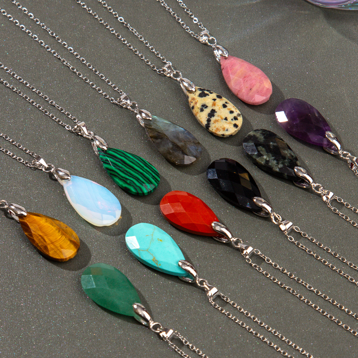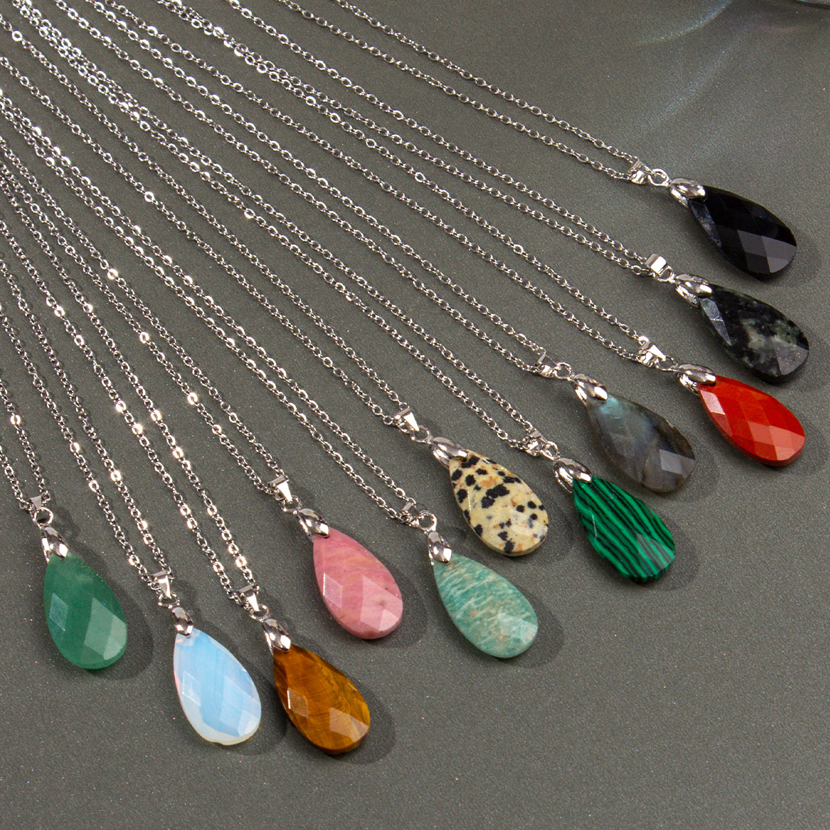 Colliers de pierres précieuses, pierre gemme, avec chaîne de fer, larme, Placage de couleur argentée, naturel & différents matériaux pour le choix & chaîne ovale, 25mm Environ 19.5 pouce, Vendu par brin
