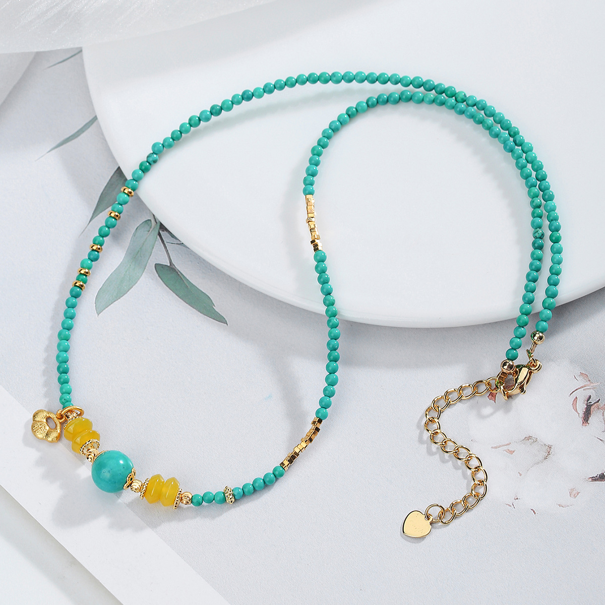 Colliers de pierres précieuses, agate jaune, avec turquoise & pierre gemme & Acier inoxydable 304, bijoux de mode & unisexe, Vendu par PC