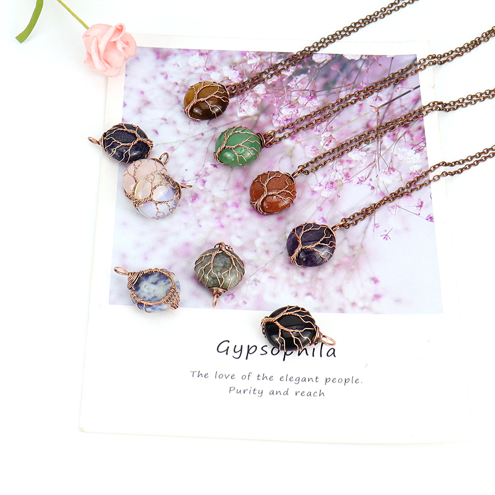 Colliers de pierres précieuses, Pierre naturelle, avec chaîne de fer, fait à la main, bijoux de mode & différents matériaux pour le choix & pour femme, couleur cuivre antique, Vendu par PC