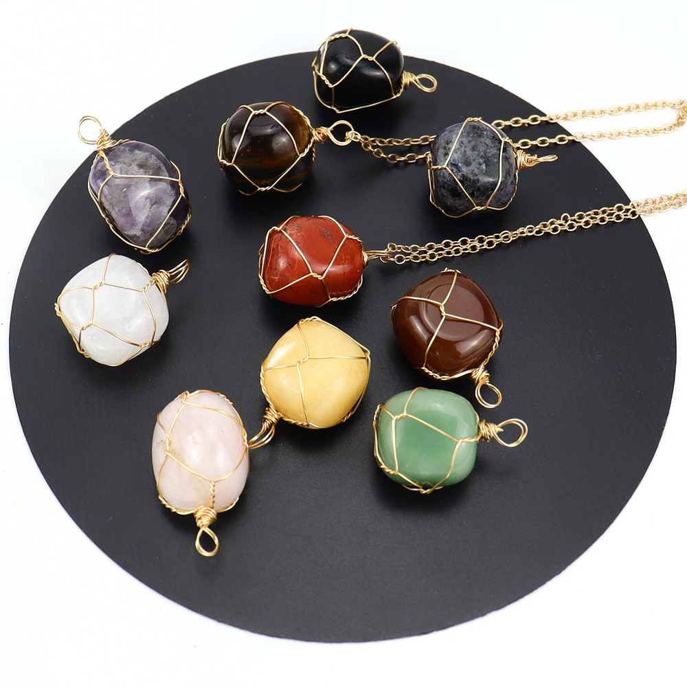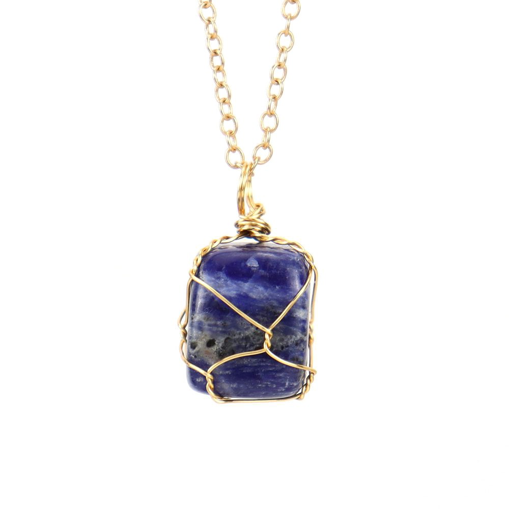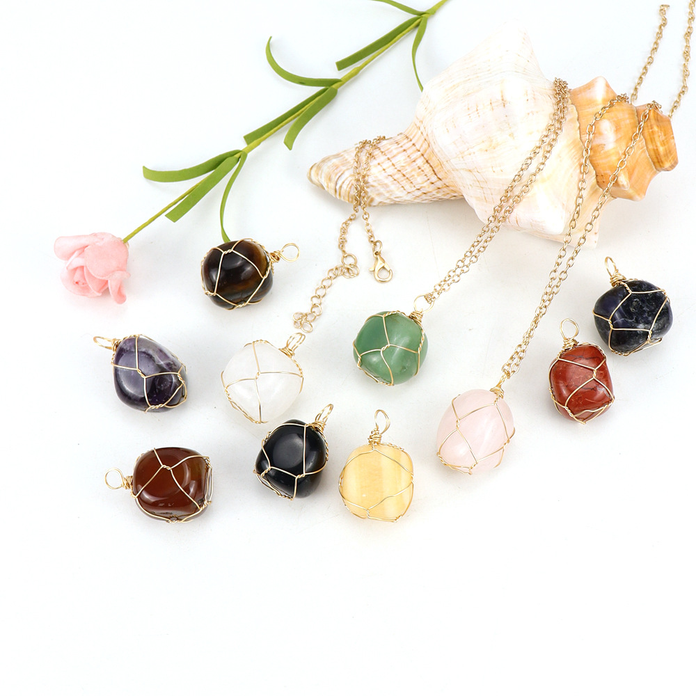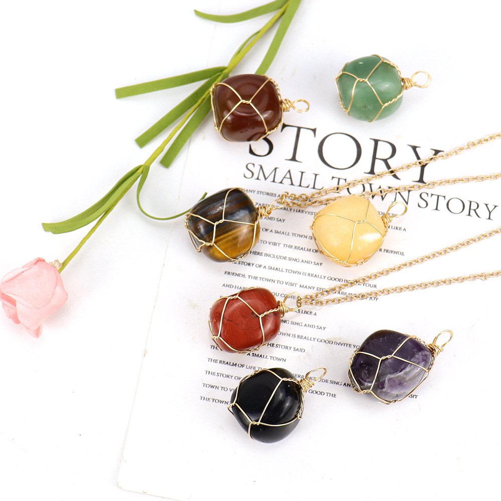 Colliers de pierres précieuses, Pierre naturelle, avec fil en laiton & chaîne de fer, fait à la main, bijoux de mode & différents matériaux pour le choix & pour femme, doré, Vendu par PC
