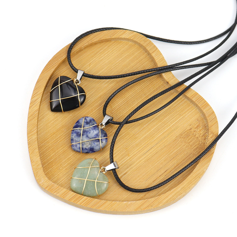 Colliers de pierres précieuses, pierre gemme, avec fil en laiton & cordon en cuir, fait à la main, bijoux de mode & différents matériaux pour le choix & pour femme, Vendu par PC