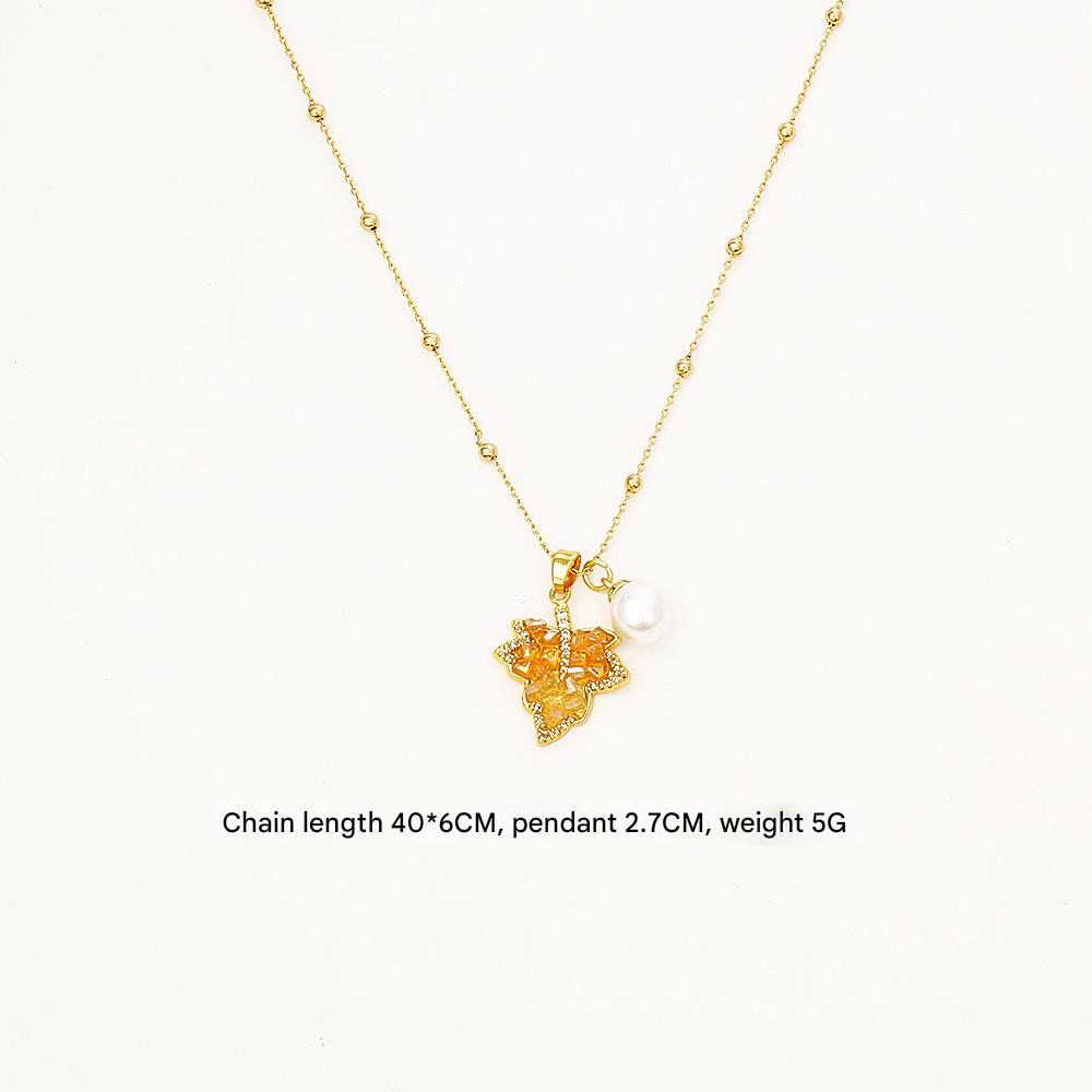 Colliers de pierres précieuses, laiton, avec pierre gemme & perle de plastique, Feuille d'érable, Plaqué d'or, bijoux de mode & pour femme, Vendu par PC