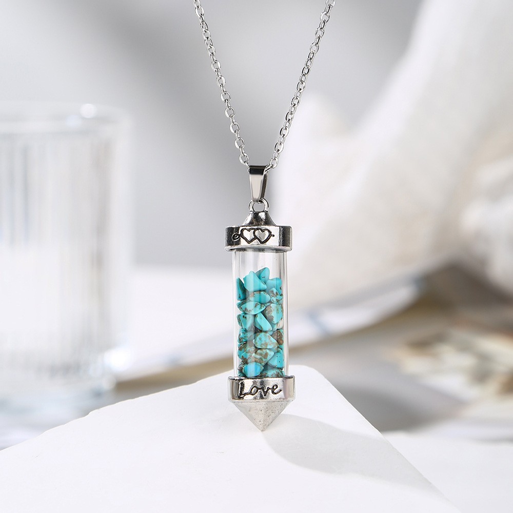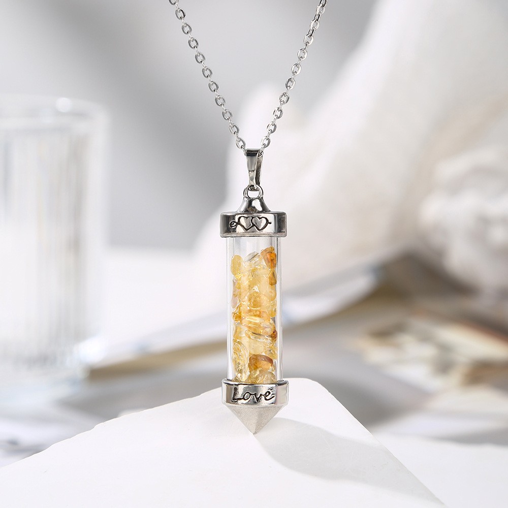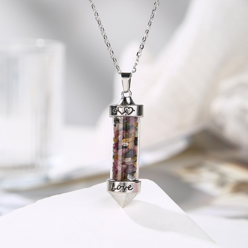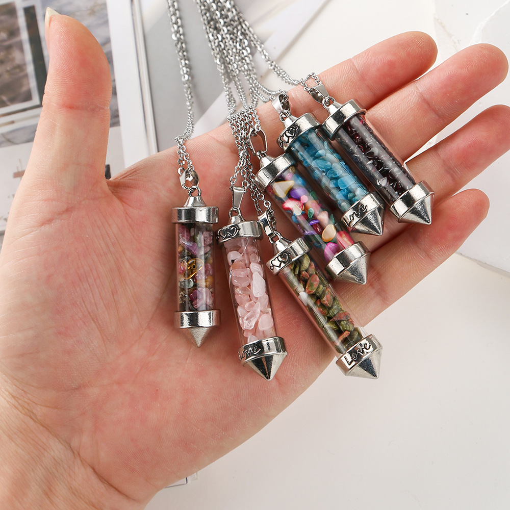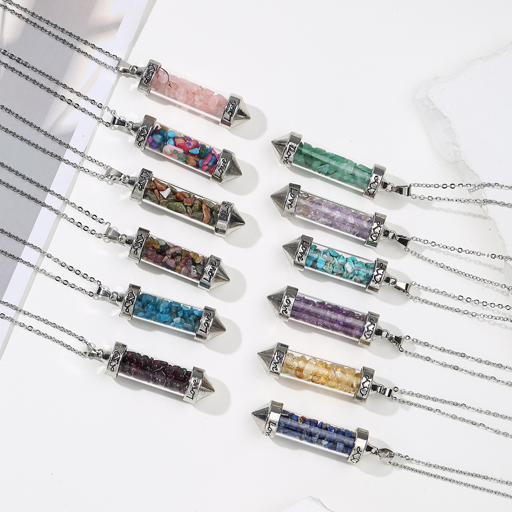 Colliers de pierres précieuses, Gravier naturel, avec verre & Acier inoxydable 304, Placage de couleur argentée, bijoux de mode & différents matériaux pour le choix & unisexe, Vendu par PC