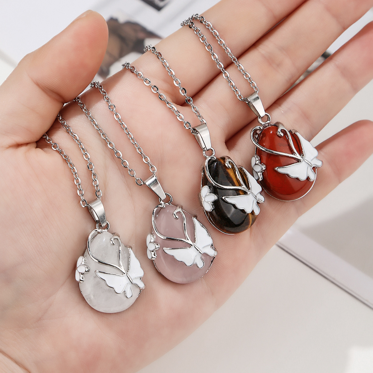Colliers de pierres précieuses, pierre gemme, avec Acier inoxydable 304, différents matériaux pour le choix & pour femme & émail, Vendu par PC