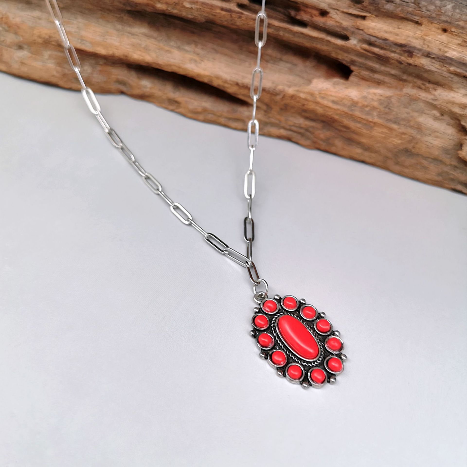 Colliers de pierres précieuses, pierre gemme, avec chaîne de fer & alliage de zinc, étoile, Placage de couleur argentée, naturel & différents matériaux pour le choix & chaîne ovale, 15mm Environ 19.5 pouce, Vendu par brin