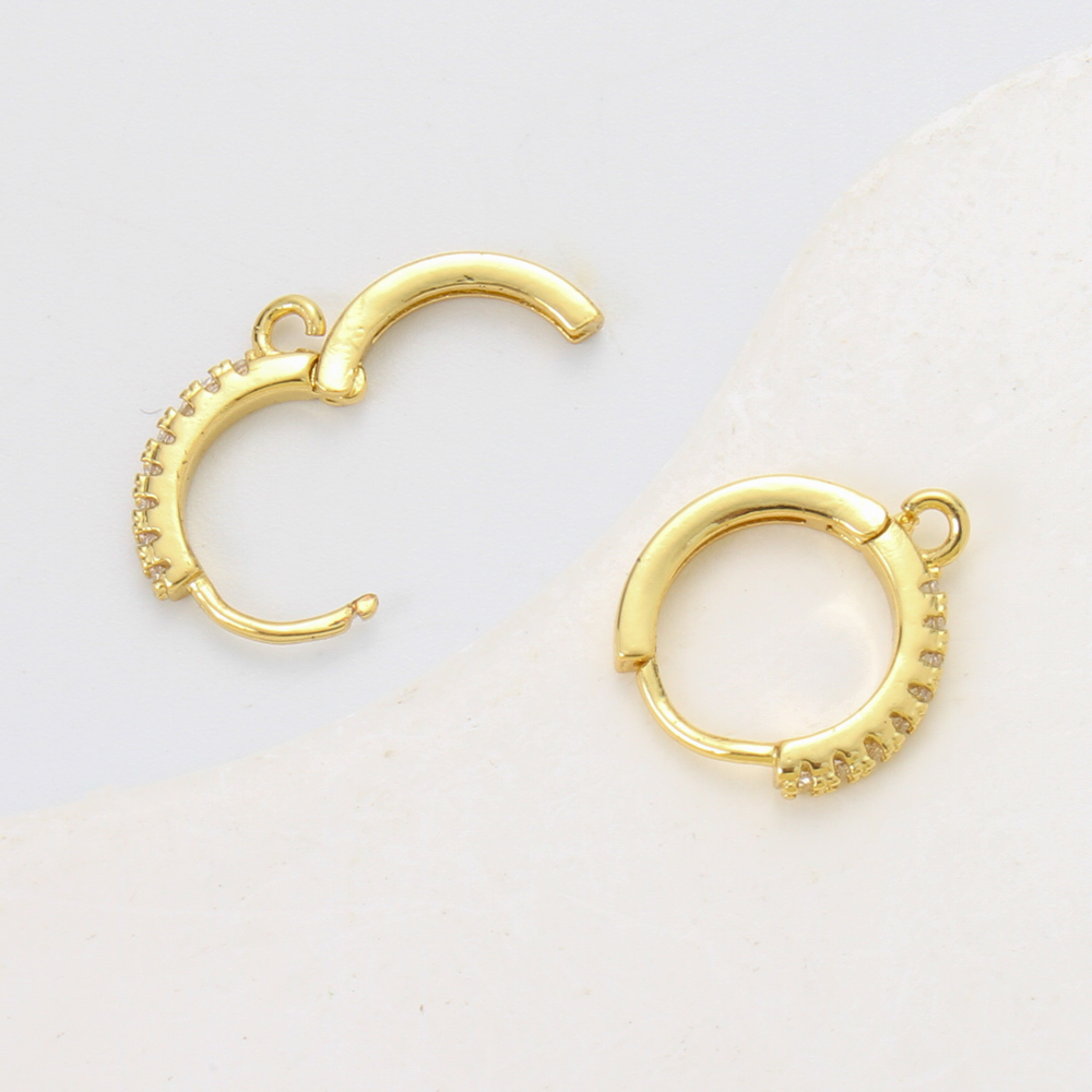 Composant anneau en laiton pour boucle d'oreille, Placage, DIY & pavé de micro zircon, doré, protéger l'environnement, sans nickel, plomb et cadmium, 16x13.7x2.2mm, Taille:1, Vendu par paire