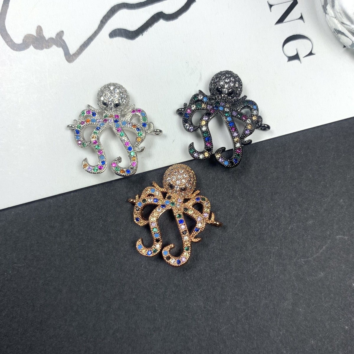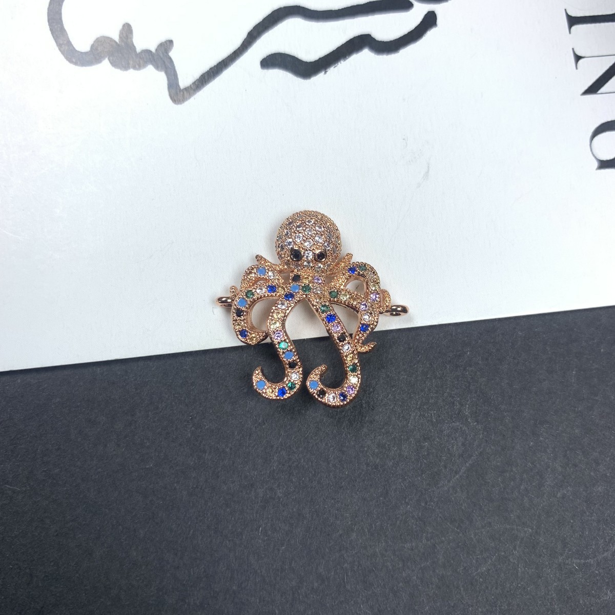 Conclusion de broche en laiton, Poulpe, Placage, DIY & pavé de micro zircon, plus de couleurs à choisir, Vendu par PC