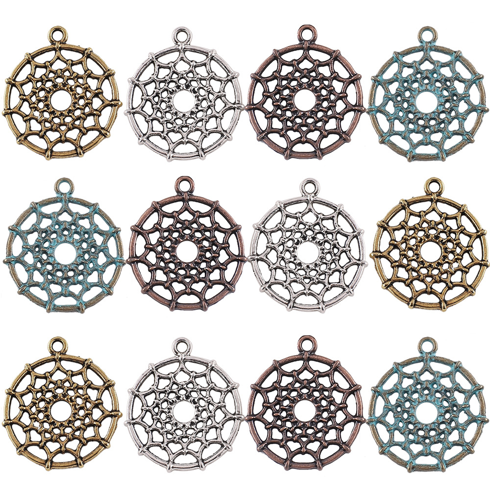 22x 22mm/ Round Dream Catcher Ancient Silver