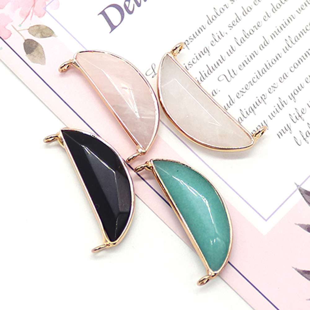 Connecteur de pierre gemme, avec laiton, DIY, plus de couleurs à choisir, 15x31mm, Vendu par PC