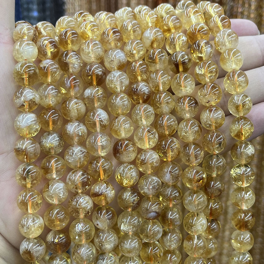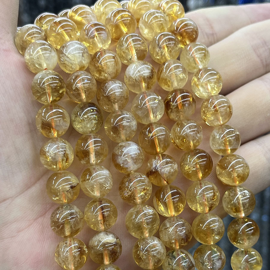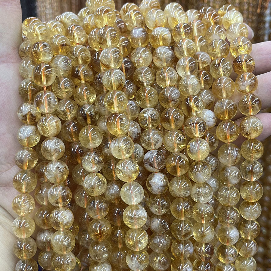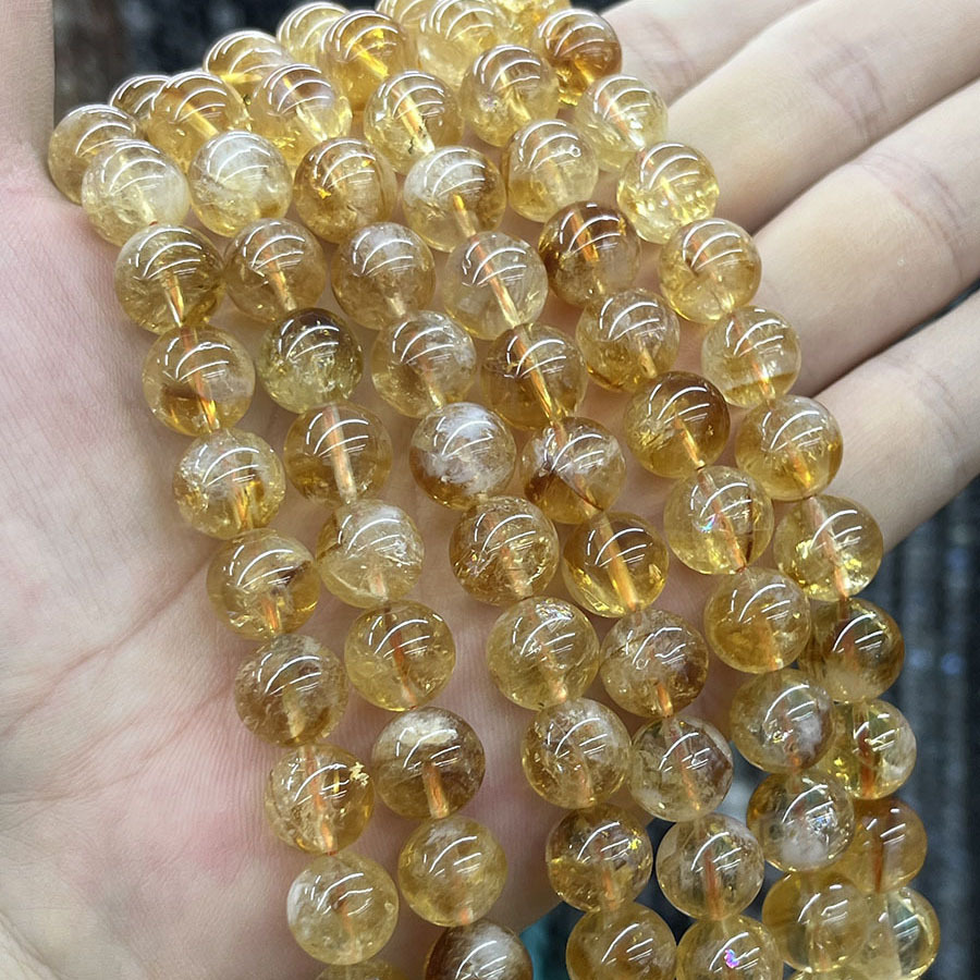 Cristal en jaune naturelles, perles de citrine, Rond, DIY, Jaune, 10mm, Longueur:38 cm, Vendu par brin