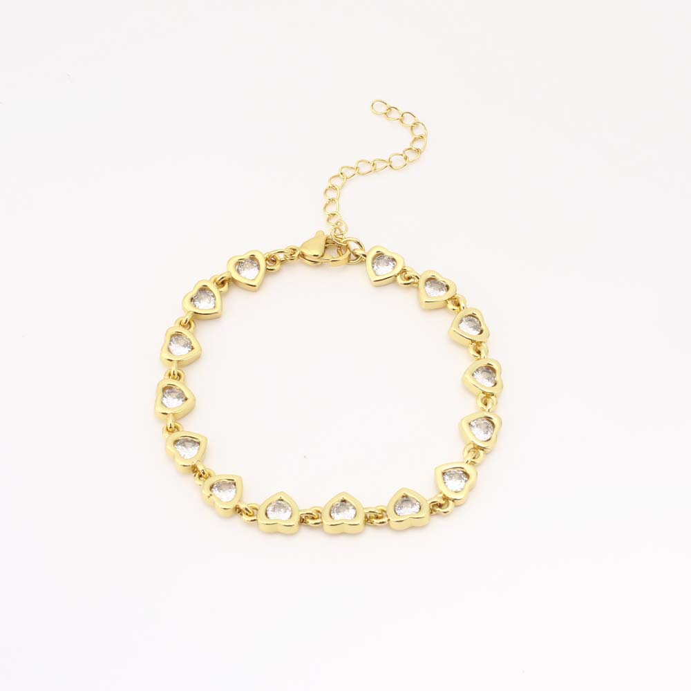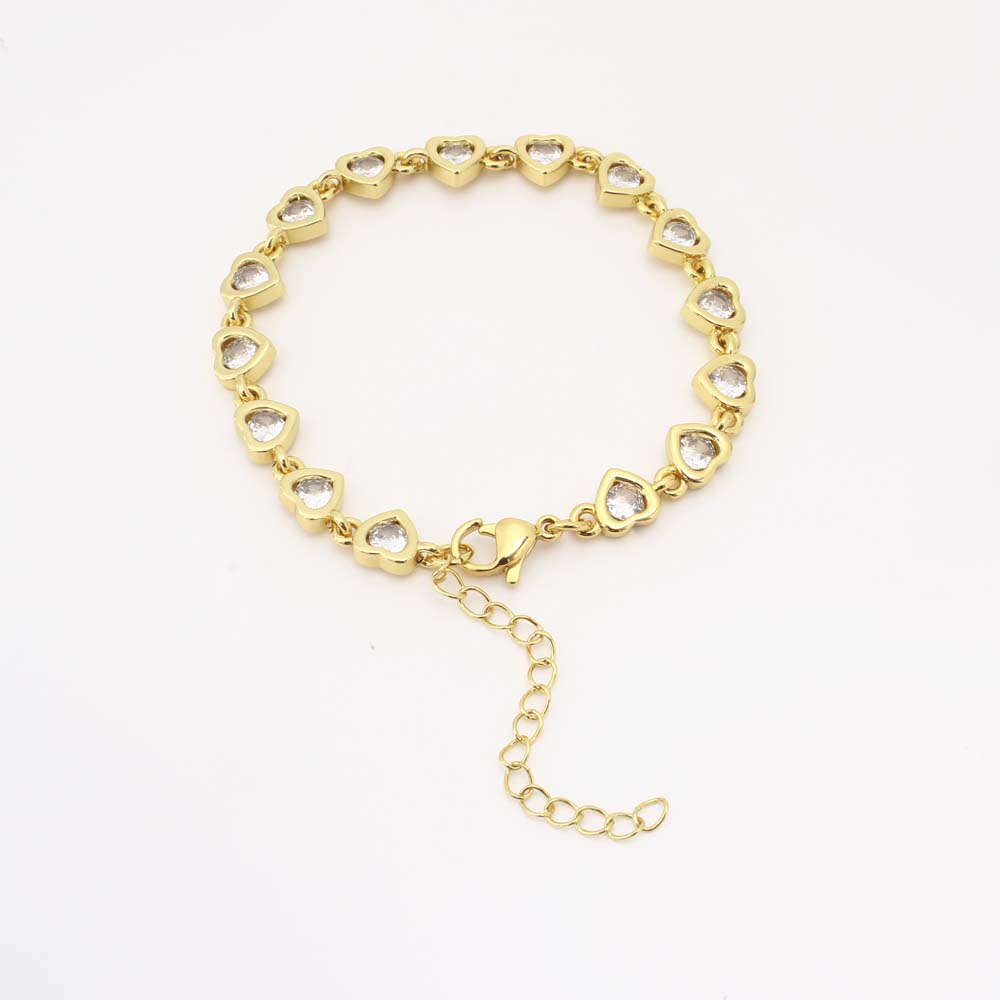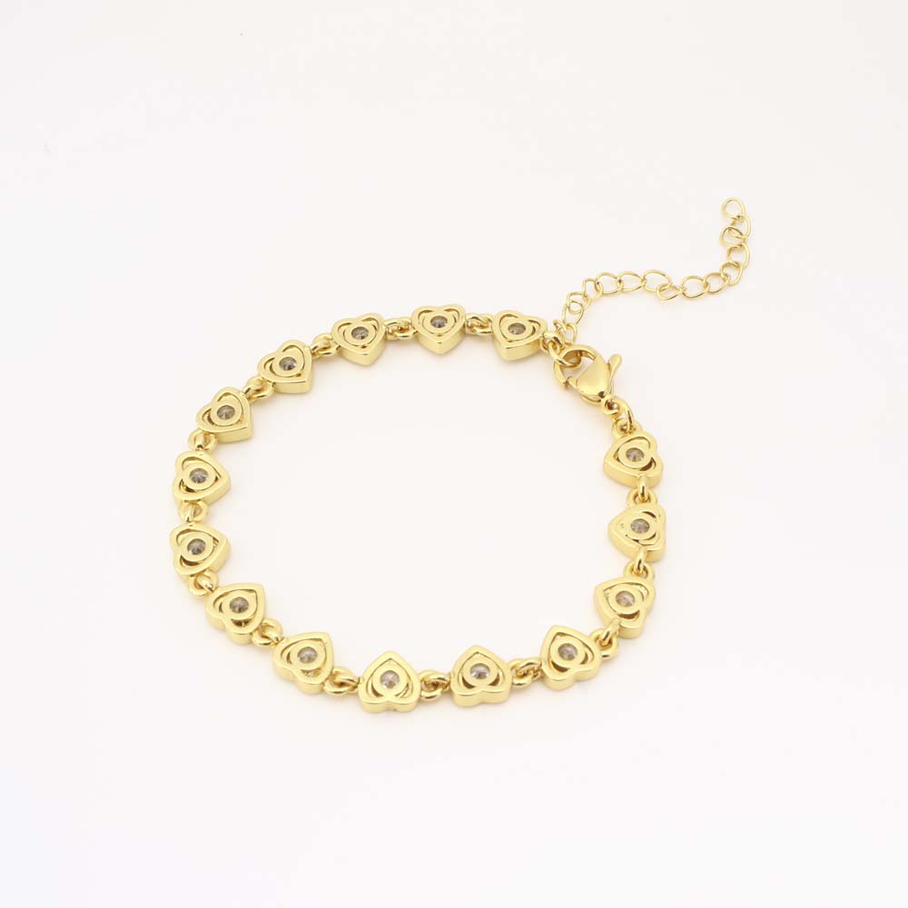 Cubes bracelets en laiton zircone, coeur, bijoux de mode & pavé de micro zircon & pour femme, doré, Vendu par PC