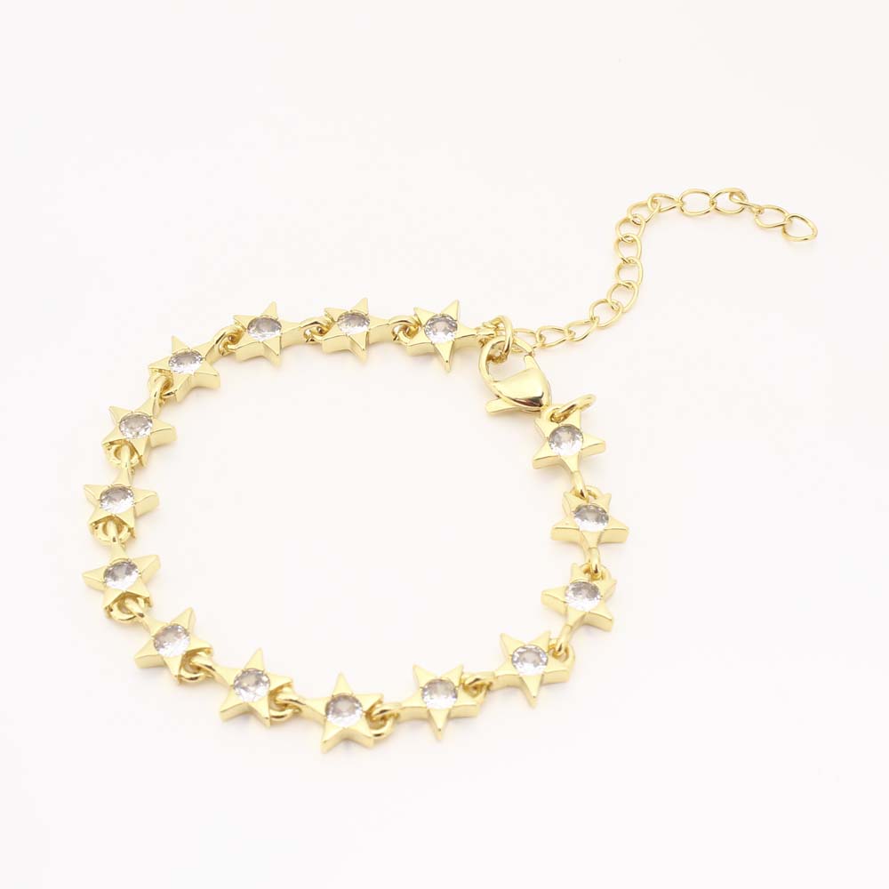 Cubes bracelets en laiton zircone, étoile, bijoux de mode & pavé de micro zircon & pour femme, doré, Vendu par PC