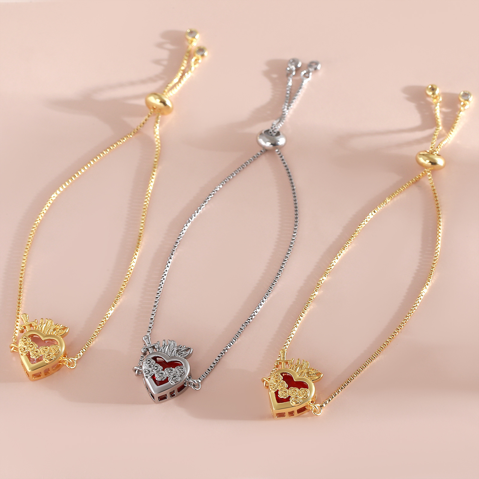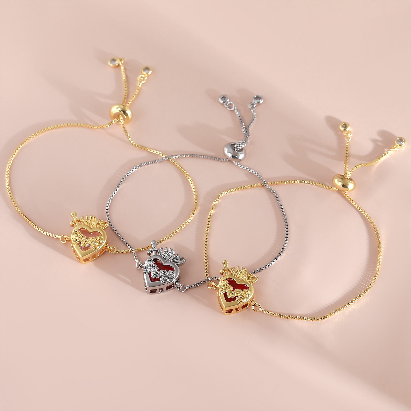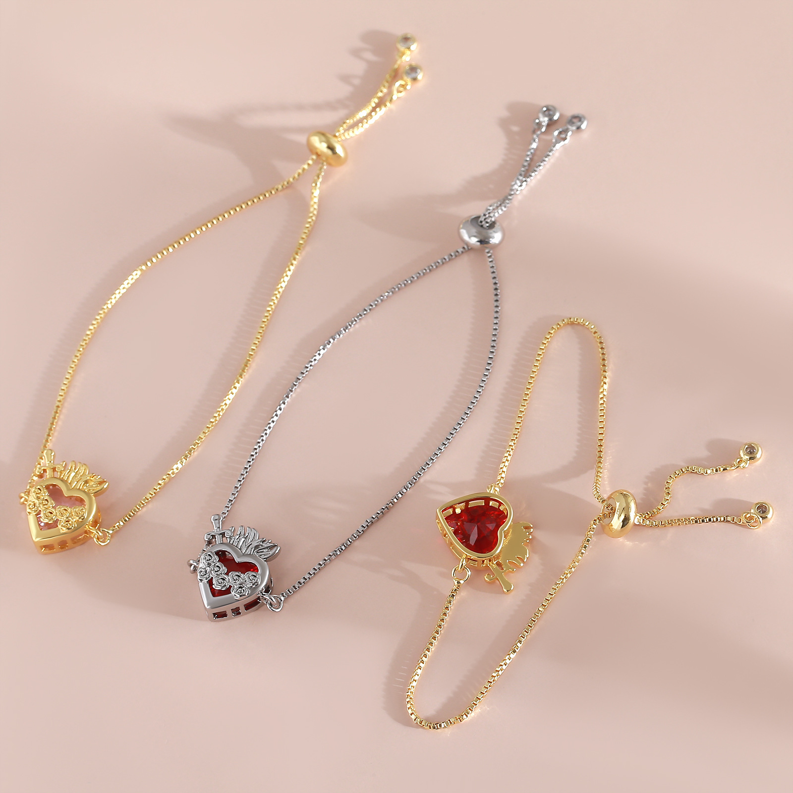 Cubes bracelets en laiton zircone, Plaqué de platine, réglable & chaîne de boîte & styles différents pour le choix & pour femme & avec zircone cubique, protéger l'environnement, sans nickel, plomb et cadmium Environ 7.5 pouce, Vendu par brin