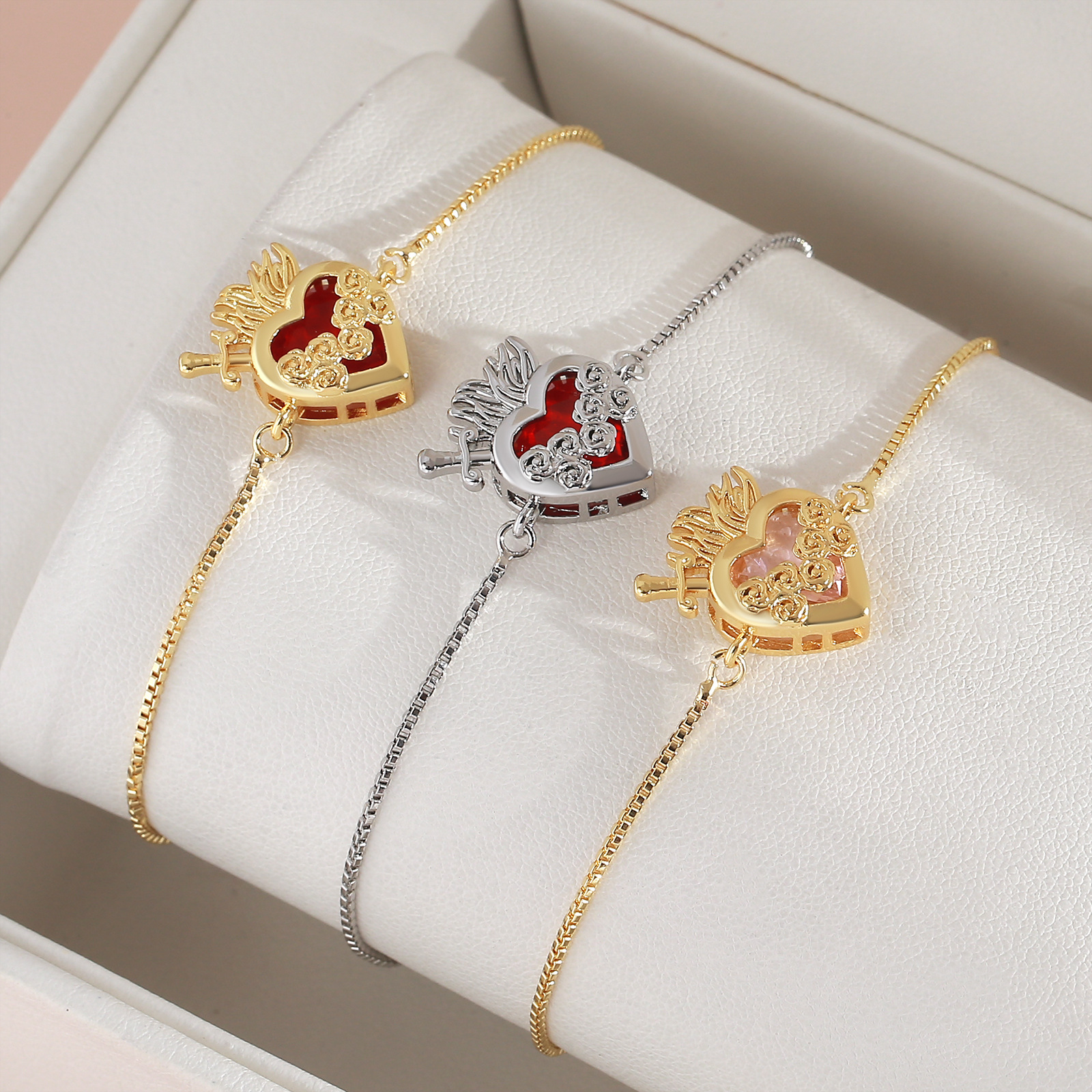 Cubes bracelets en laiton zircone, feuille, Placage, pour femme & avec zircone cubique, plus de couleurs à choisir Environ 7 pouce, Vendu par brin