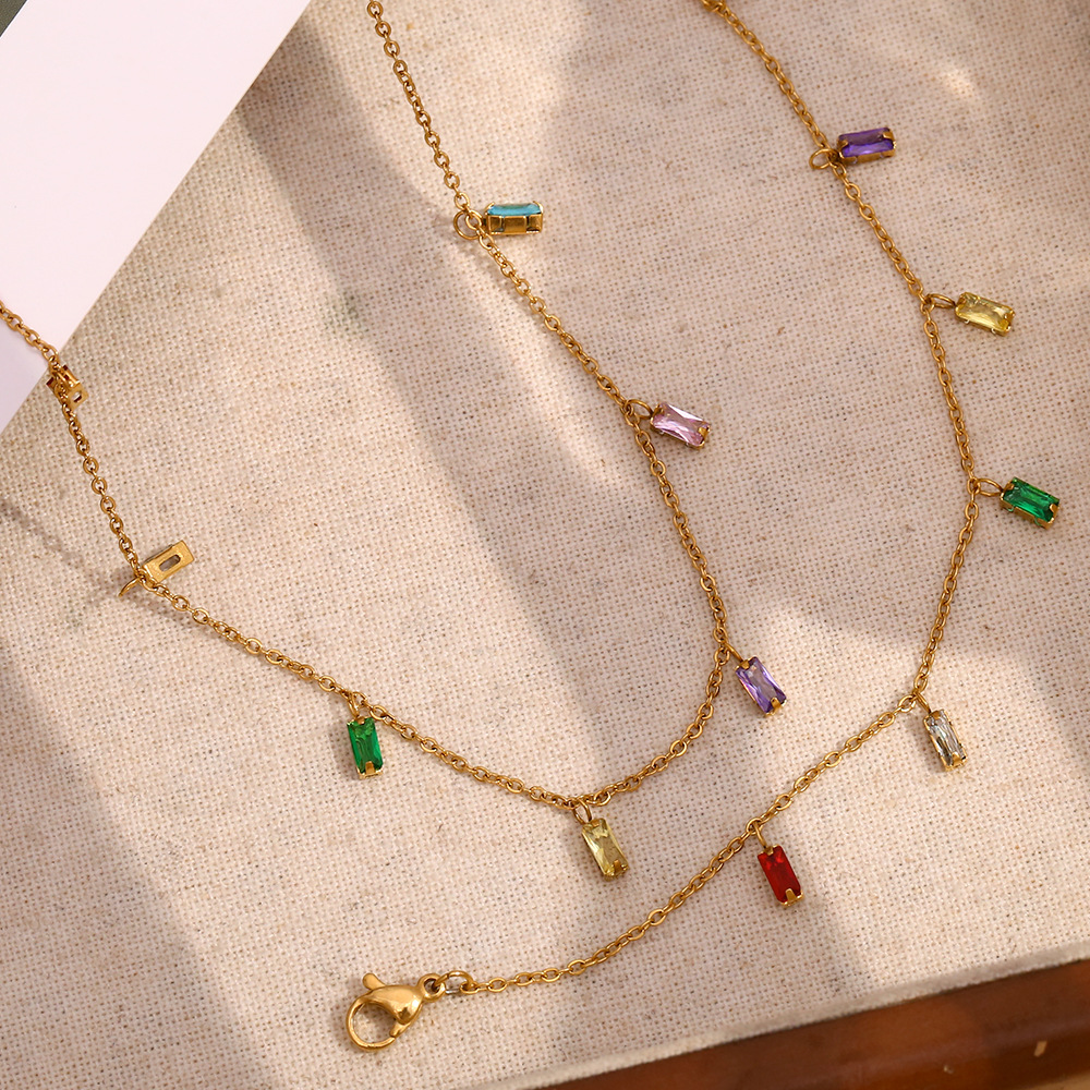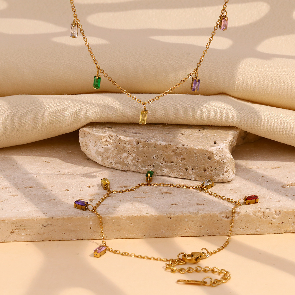 Cubic Zirconia Micro Pave Ensembles de bijoux en acier inoxydable, boucle d'oreille & collier, avec 2lnch chaînes de rallonge, rectangle, Placage, chaîne ovale & avec zircone cubique, plus de couleurs à choisir   Environ 17.5 pouce, Vendu par fixé