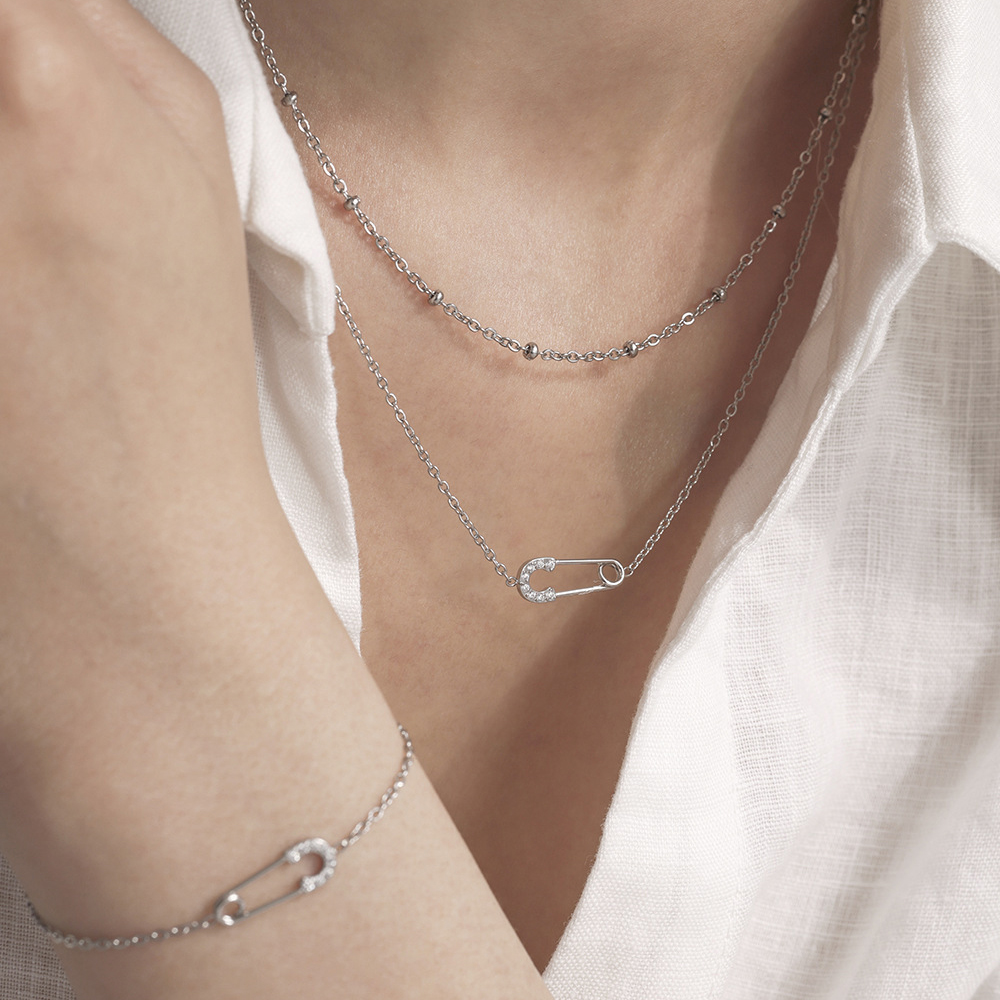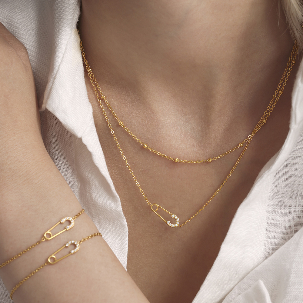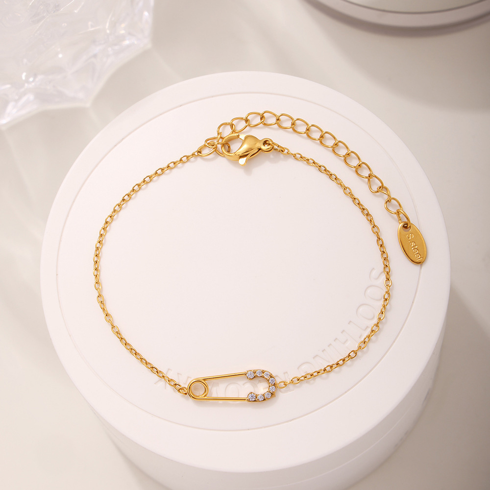 TXE233-gold paper clip zircon bracelet 16 5cm